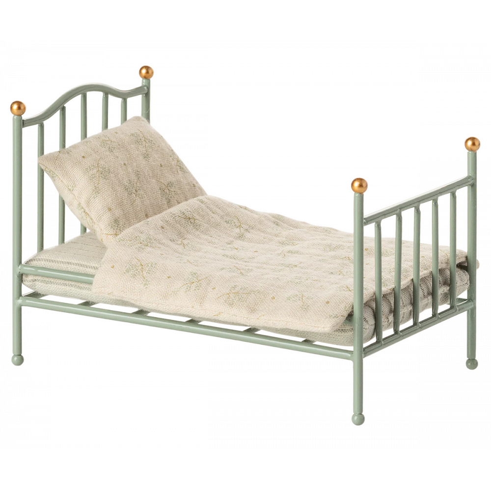 Let your Maileg friends have a sleep-over in the vintage metal bed. It comes with a soft bedding set made in our beautiful Maileg printed fabrics. It fits the smaller mice perfectly. Dimensions Height: 3.35in, Width: 5.12in, Depth: 3.35in, Net weight: 0.20lb