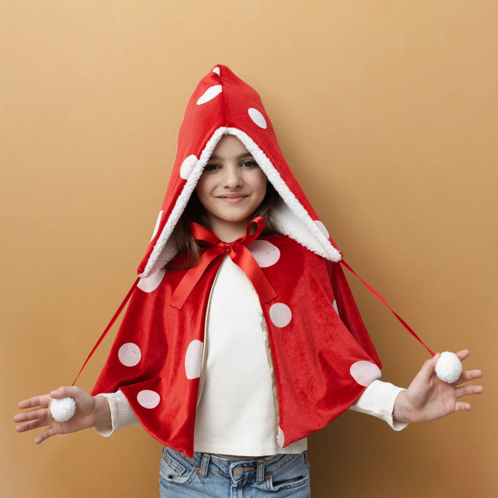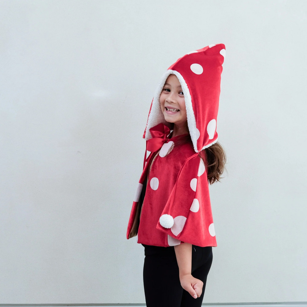 Transform playtime into a magical woodland adventure with our Toadstool dress-up set! This wonderfully spotty scarlet cape and hat duo will bring enchanted forest fun to life! Sized to fit ages 3-10 years Cape crafted from super soft, red spotted velvet fabric with satin lining and popper button closure with satin bow Hat crafted from super soft, red spotted velvet fabric with fleece lining and ribbon and pom pom tails Cape measures approx 35cm in length Hat measures approx 45cm in length Wipe clean only Safety tested Warning! Not suitable for children under 36 months