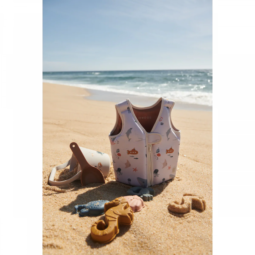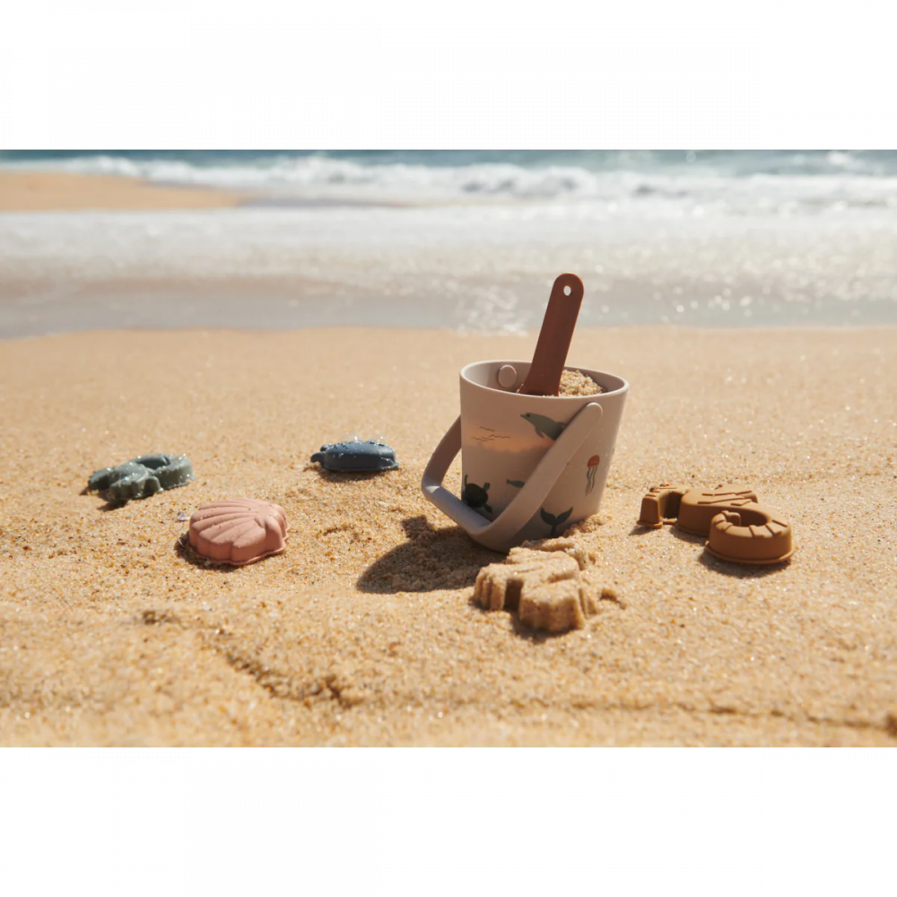 Let sunny days spark your little one's imagination with the GILMA beach bucket set. Adorned with playful prints and matching moulds, this soft silicone set is perfect for shaping sand castles, scooping treasures, and making memories by the sea or by the pool. Beach bucket set with summery prints The set includes 1 soft silicone bucket, 1 shovel, and 4 sand moulds The moulds match the print on the bucket Durable and long-lasting for hours of fun Bring it to the beach or the pool