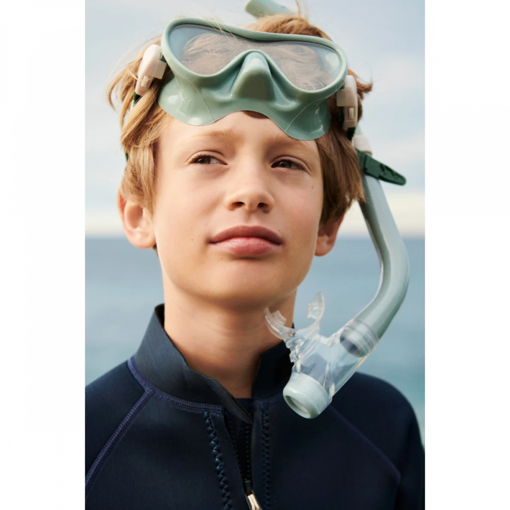 Get ready for underwater adventures with the Jacques mask and snorkel combo. The mask has a soft silicone frame, a tempered glass lens and two push-button buckles on the frame making it easy to take on and off. The detachable snorkel has a semi-dry top, meaning that it will prevent splashes of water entering the snorkel making it a great choice for first-time snorkellers. Dive mask and snorkel set For fun underwater explorations Soft silicone frame for extra comfort Strong tempered glass lens Simple snorkel clip for easy attachment to the mask strap