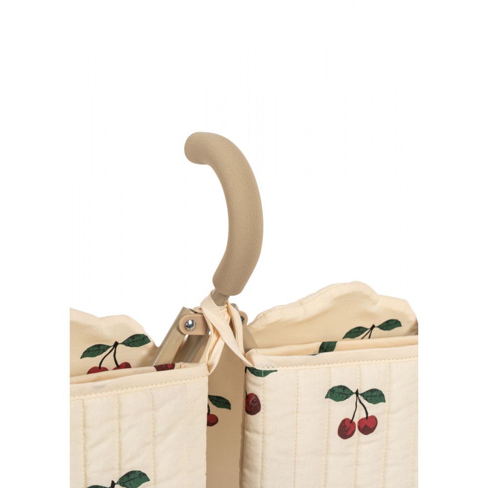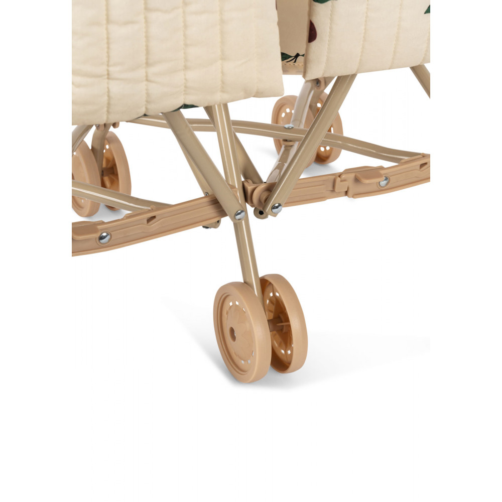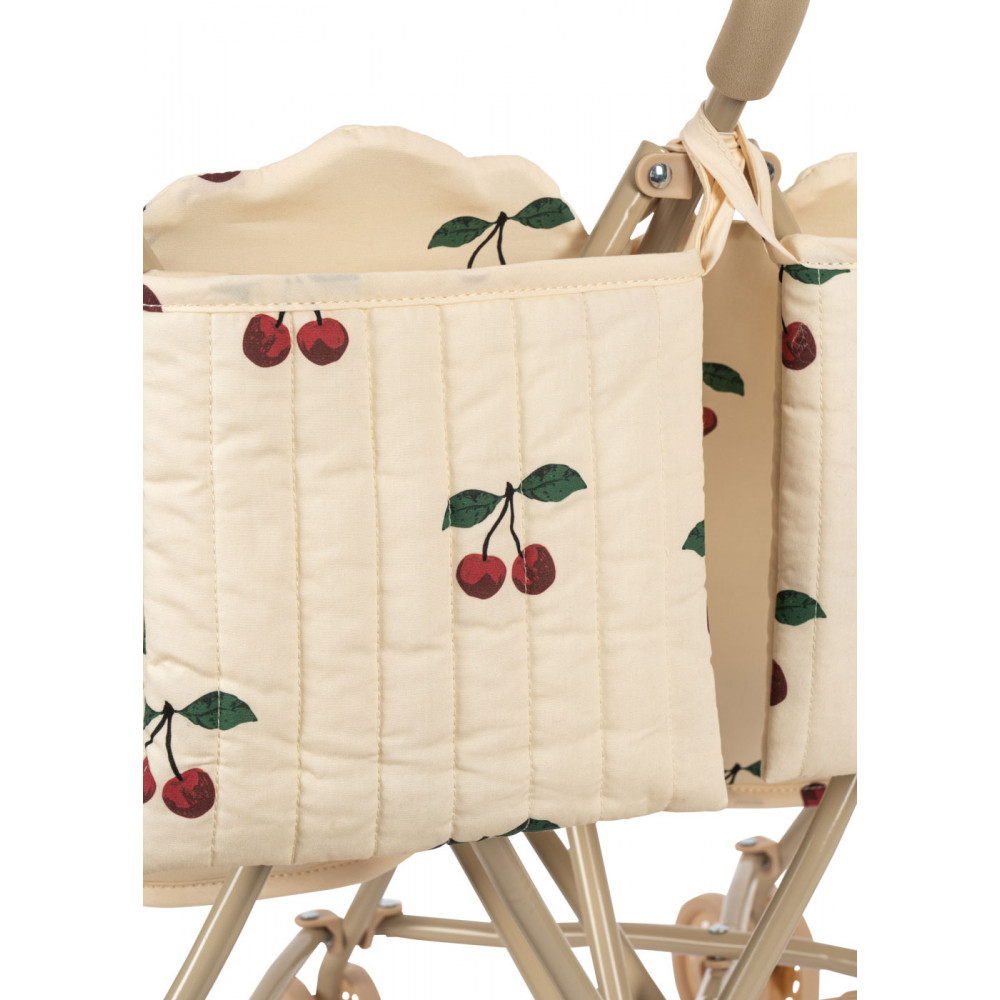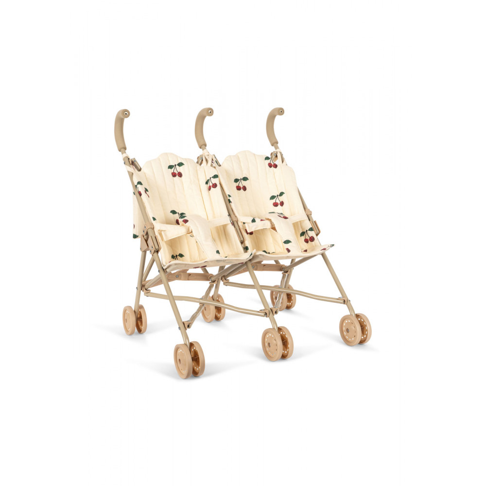 For little doll parents that have more dolls than they can carry: A cute and practical twin-size stroller. The twin stroller is designed with harnesses, carriage bags, and double wheels on all legs for extra stability. Features removable quilted fabric seats for the dolls. Suitable from 3y+