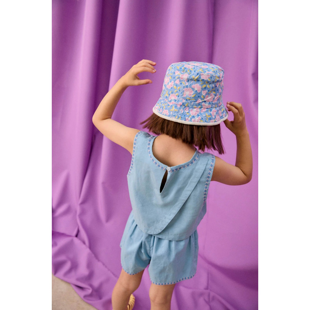 Цей вишитий топ без рукавів від Louise Misha виготовлений зі 100% бавовняної вуалі для комфорту та повітропроникності в теплі дні. Велика текстурована квіткова вишивка прикрашає передню частину, а хрестиком вишивка підкреслює виріз горловини та пройми, створюючи ефект ручної роботи. Розріз ззаду на ґудзику та перехресні вставки відкривають нижню частину спини, а повна підкладка забезпечує комфортне та непрозоре покриття. Створений у Парижі Марі Підансе та її командою, цей дитячий топ поєднує паризький шарм із практичним дизайном, ідеально підходить для ігор, сімейних прогулянок та особливих подій.