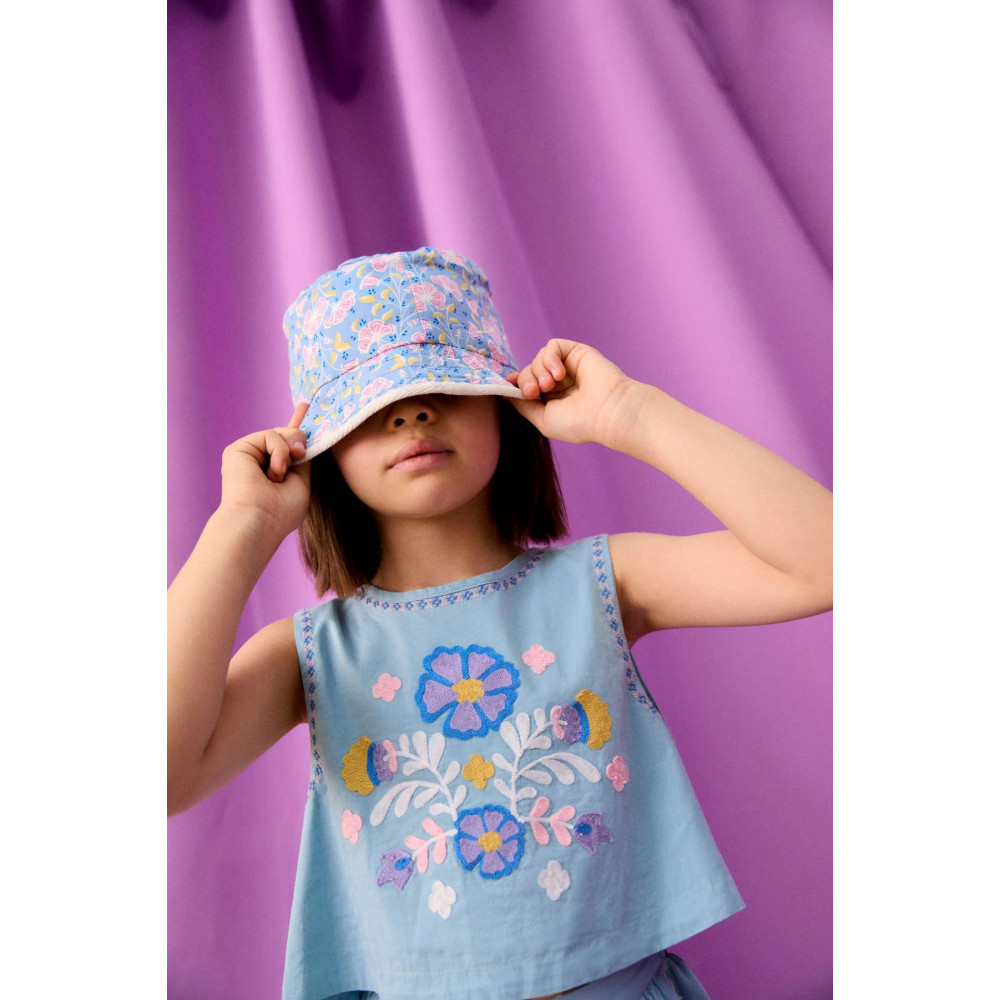 Цей вишитий топ без рукавів від Louise Misha виготовлений зі 100% бавовняної вуалі для комфорту та повітропроникності в теплі дні. Велика текстурована квіткова вишивка прикрашає передню частину, а хрестиком вишивка підкреслює виріз горловини та пройми, створюючи ефект ручної роботи. Розріз ззаду на ґудзику та перехресні вставки відкривають нижню частину спини, а повна підкладка забезпечує комфортне та непрозоре покриття. Створений у Парижі Марі Підансе та її командою, цей дитячий топ поєднує паризький шарм із практичним дизайном, ідеально підходить для ігор, сімейних прогулянок та особливих подій.