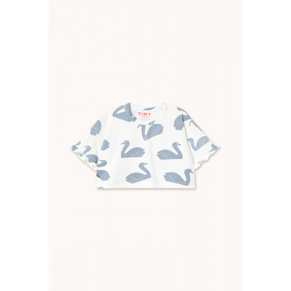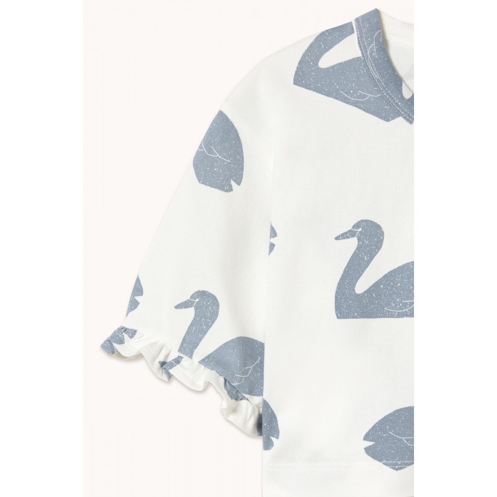 Виготовлена зі 100% органічної бавовни, ця укорочена футболка з принтом Big Swans ідеально поєднує комфорт, стиль та екологічність. Завдяки сміливому дизайну вона додає грайливості до повсякденного одягу. З короткими рукавами та круглим вирізом горловини вона забезпечує вільний крій, а м'яка, дихаюча тканина ніжна до чутливої шкіри. Ця футболка ідеально підходить для повсякденних прогулянок або затишних днів вдома, вона забезпечує якість та комфорт для вашої малечі.