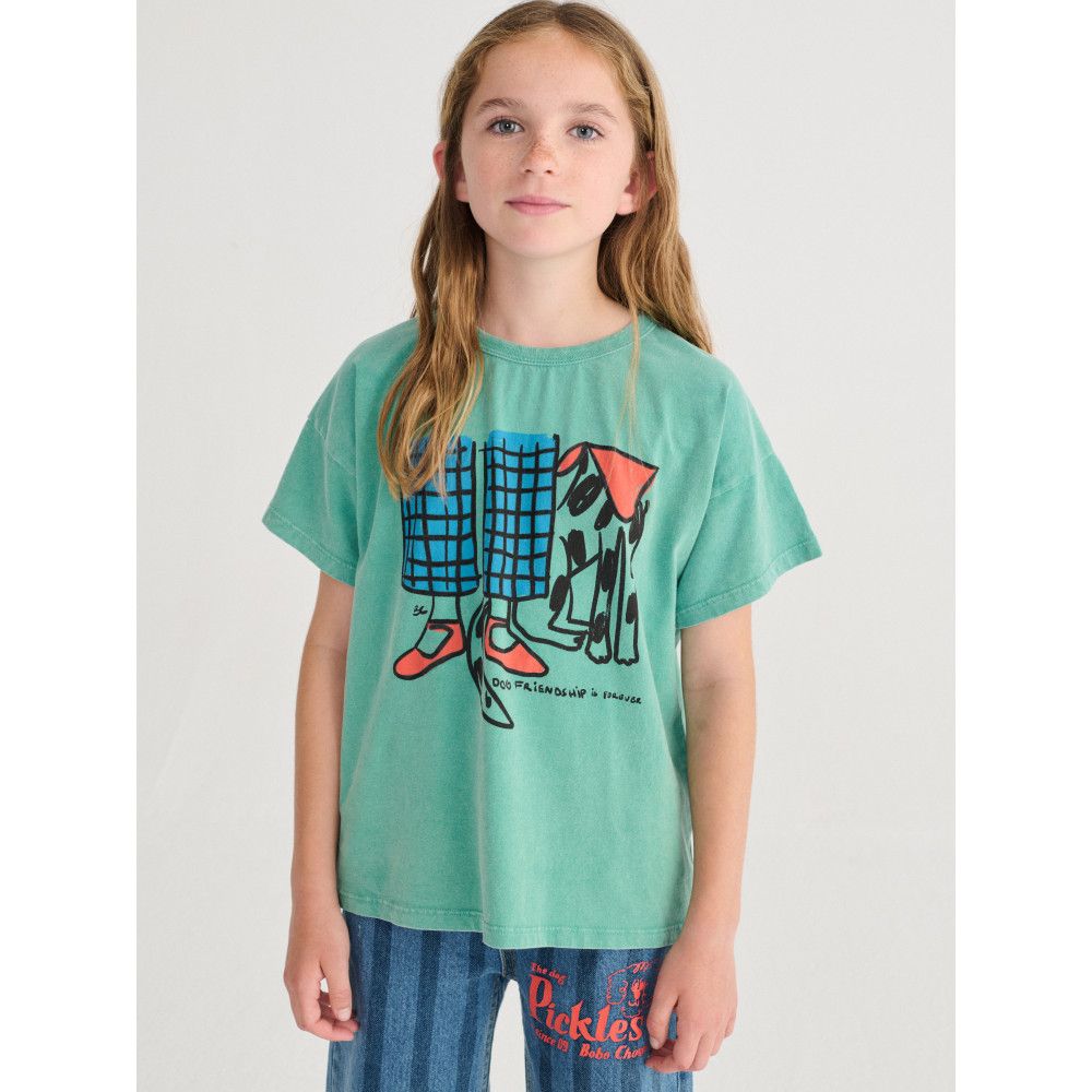 Зелена футболка. З короткими рукавами, вільним кроєм та круглим вирізом. Виготовлено в Іспанії.