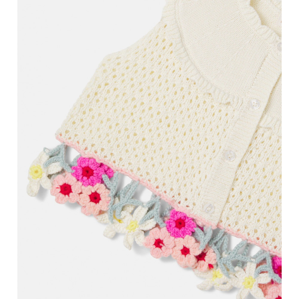Светр-безрукавка Elea від Louise Misha вирізняється яскравою квітковою вишивкою на обробці та ажурною в'язкою по всій поверхні. Дизайн виготовлений з бавовни та оздоблений фестончастим коміром у стилі Пітера Пена.