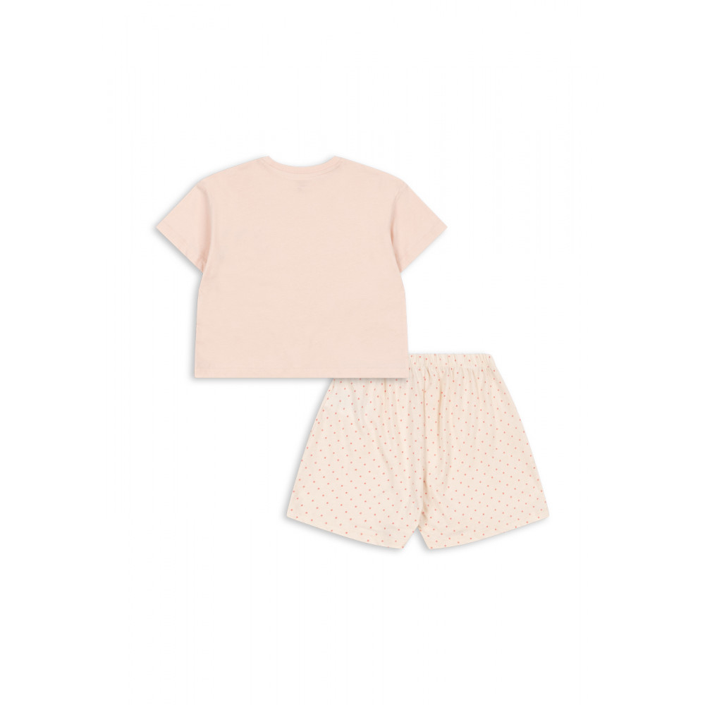 Комплект із двох предметів з органічної бавовни, футболки та шортів у тон. Виготовлений у привабливому вільному крої, який легко та зручно носити. Зверніть увагу: футболка має кнопки на лівому плечі для дітей до 18 місяців для легшого одягання.