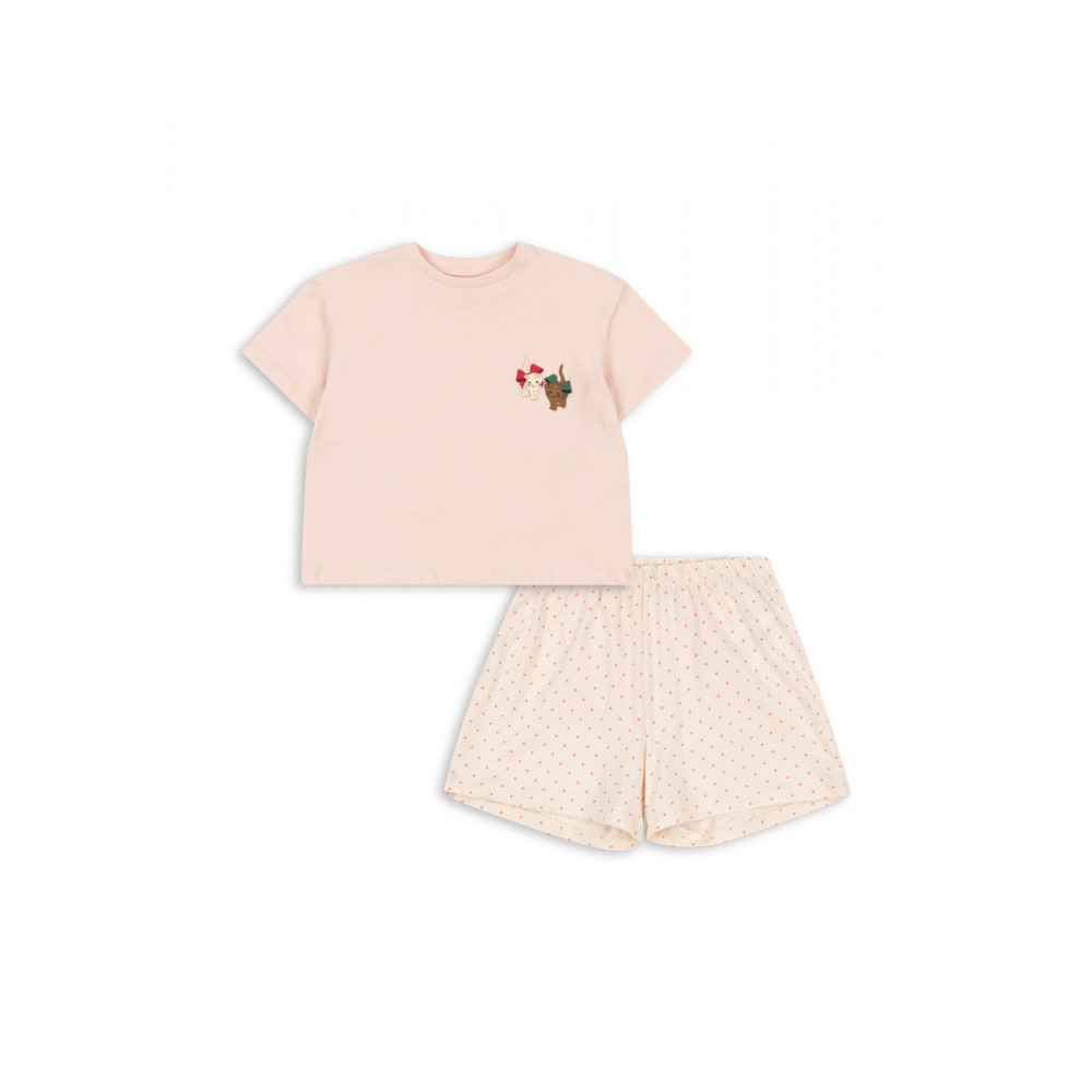 Комплект із двох предметів з органічної бавовни, футболки та шортів у тон. Виготовлений у привабливому вільному крої, який легко та зручно носити. Зверніть увагу: футболка має кнопки на лівому плечі для дітей до 18 місяців для легшого одягання.