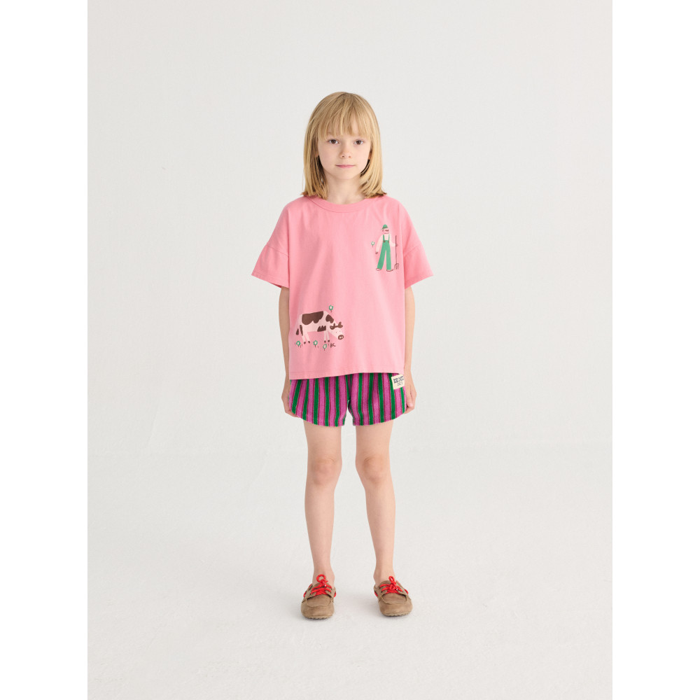 Рожева футболка. З короткими рукавами, вільним кроєм та круглим вирізом. Виготовлено в Португалії.