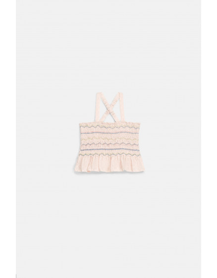 Ця яскрава майка вирізняється грайливим дизайном, ідеальним для дітей, виготовлена з м'якої, дихаючої тканини, яка забезпечує комфортне носіння протягом усього дня. Ідеально підходить для нашарування або сольного стилю, ця річ додасть веселості та шарму будь-якому вбранню.