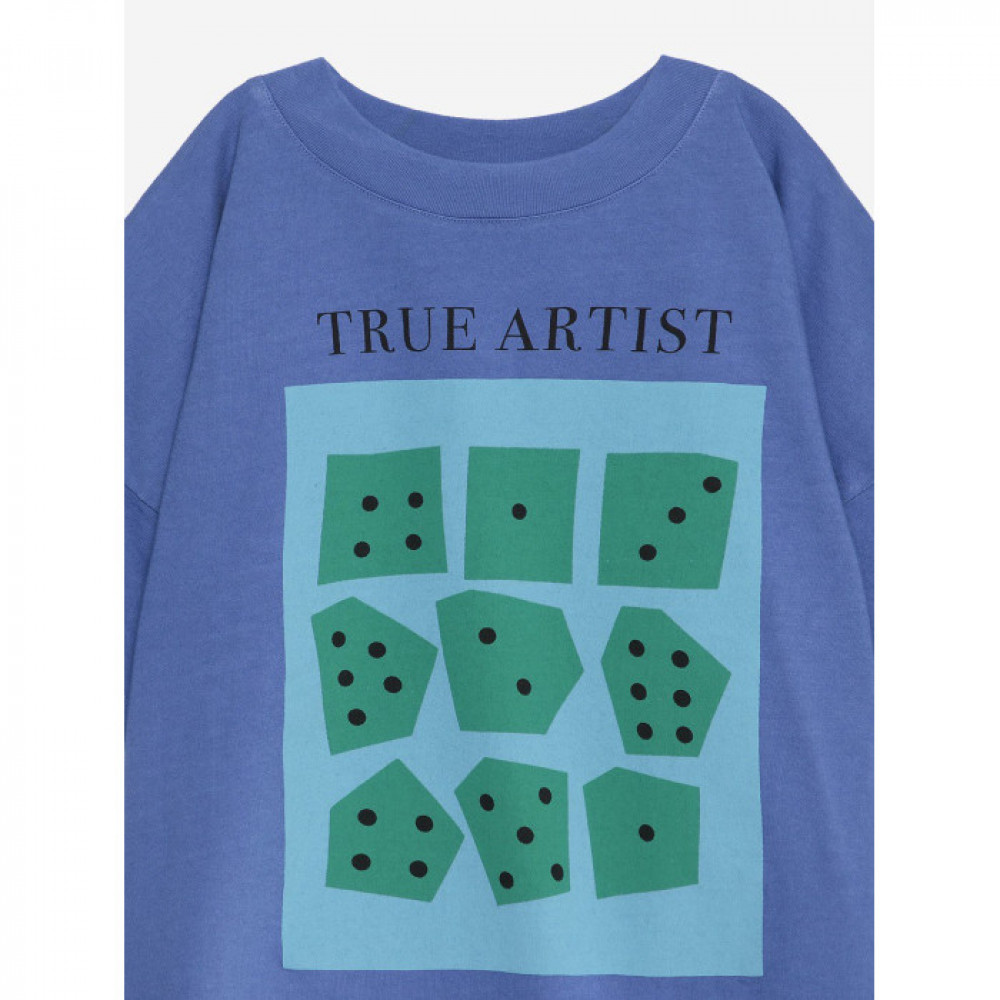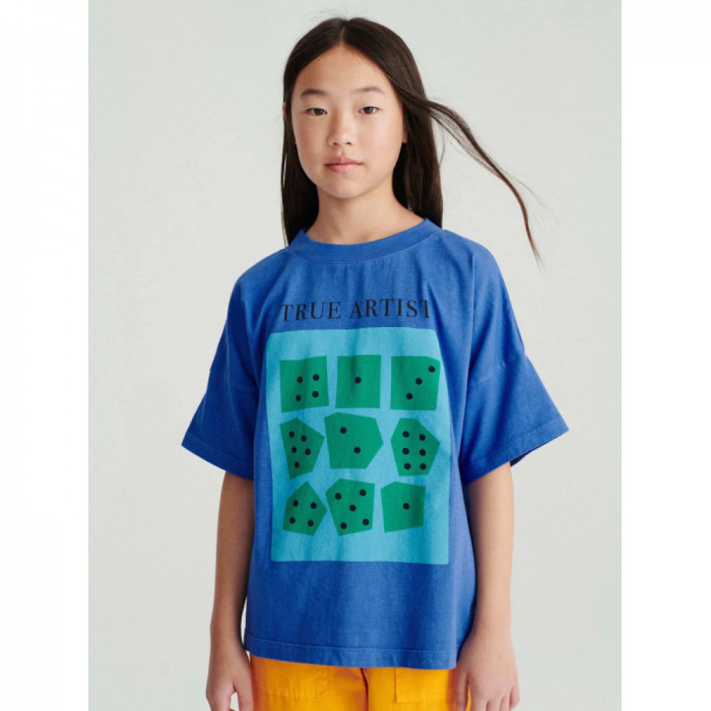 Футболка Jocs d'Estiu виготовлена зі 100% органічної бавовни та має принт грайливих кубиків спереду. Він має круглу горловину, короткі рукави та спущені плечі. Має невимушену посадку. Зроблено в Іспанії.