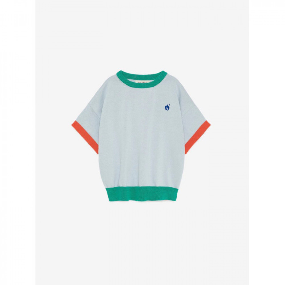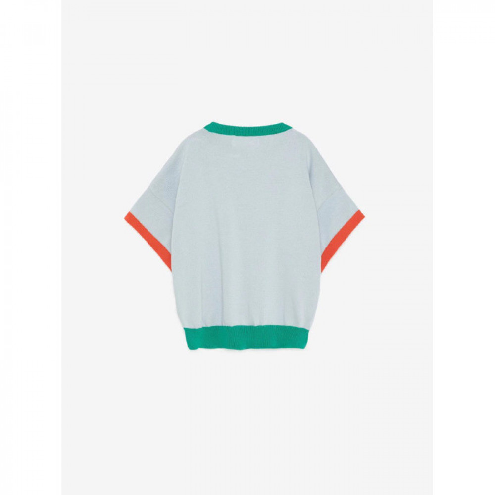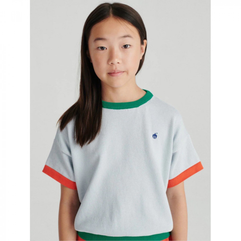 В'язана футболка L'orangerie виготовлена зі 100% органічної бавовняної пряжі. У цій трикотажній футболці з колор-блоком поєднуються різні кольори на боді, горловині, манжетах і низу в рубчик. Він розроблений із короткими рукавами, спущеними плечима та логотипом нашого птаха, вишитим на грудях. Має невимушену посадку. Зроблено в Іспанії.