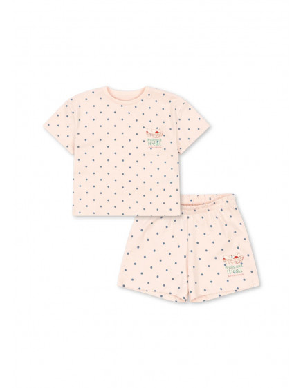 Класичний комплект з органічної бавовни, що складається з футболки з короткими втачними рукавами та м’яких шортів на еластичному поясі. Зверніть увагу: для менших розмірів, від 9 до 18 місяців, верх має кнопки на лівому плечі для зручного одягання.