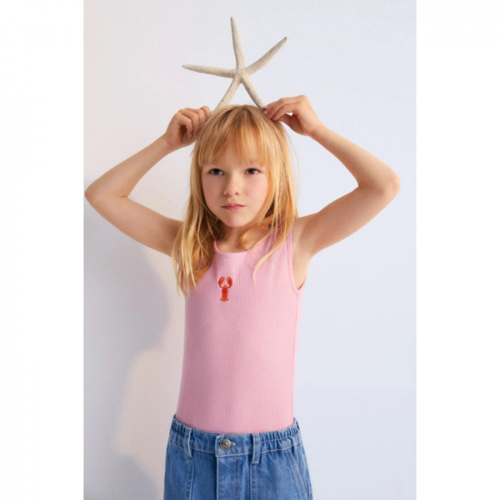 Цей ребристий топ має стильну оверлочну обробку на подолі, що додає нотку сучасності. Видатною деталлю є грайлива контрастна вишивка омара на грудях, яка пропонує унікальний і цікавий вид до вашого гардеробу. Ідеально підходить для поєднання з іншими речами з колекції для свіжого, розслабленого образу.