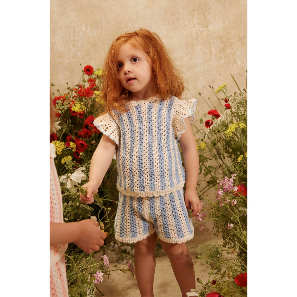 Топ Lyse в'язаний гачком з чистої бавовняної пряжі та має сині та білі смужки.