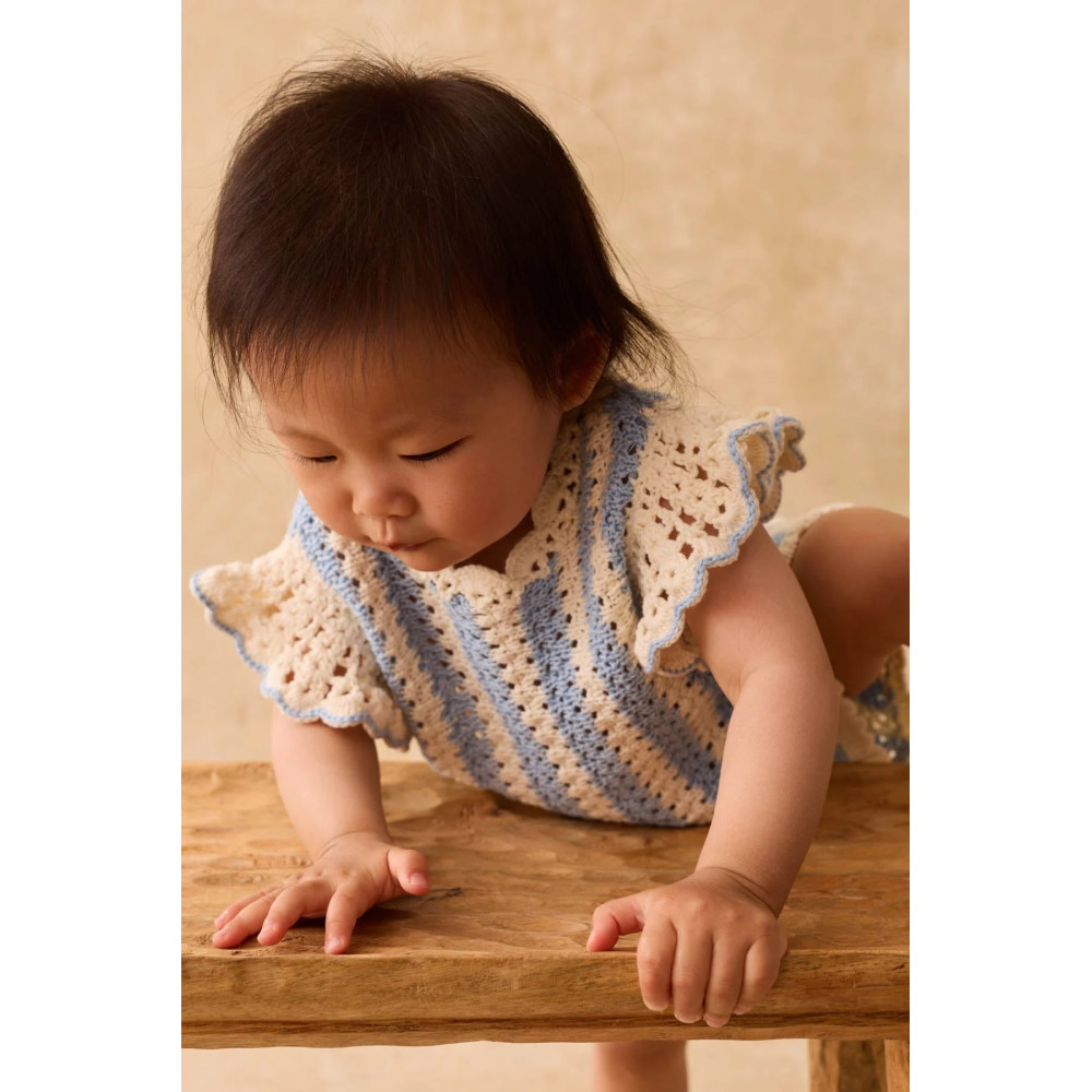 Топ Lyse в'язаний гачком з чистої бавовняної пряжі та має сині та білі смужки.