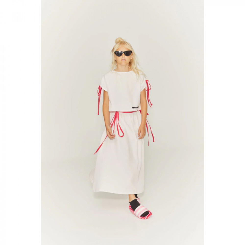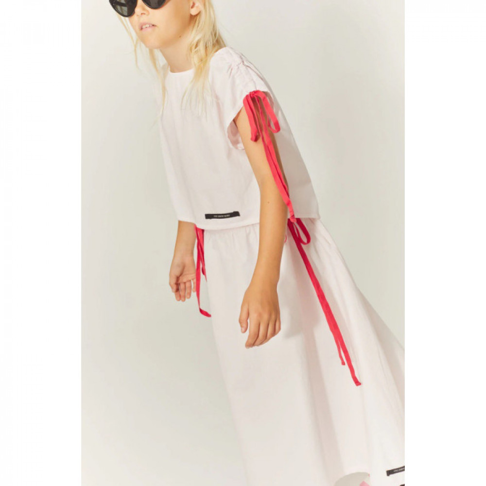 Бавовняний топ. Чудові бантики кольору фуксії на кожному рукаві. Схрещена застібка на ґудзиках.