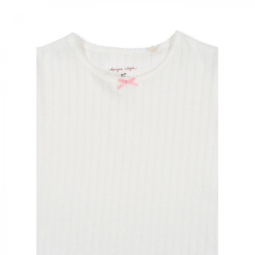 М'яка та легка футболка з органічної бавовни з ефектом рукавів-пуфів і візерунком на пуантах. Кнопка на плечі для найменших розмірів від 9M до 18M.