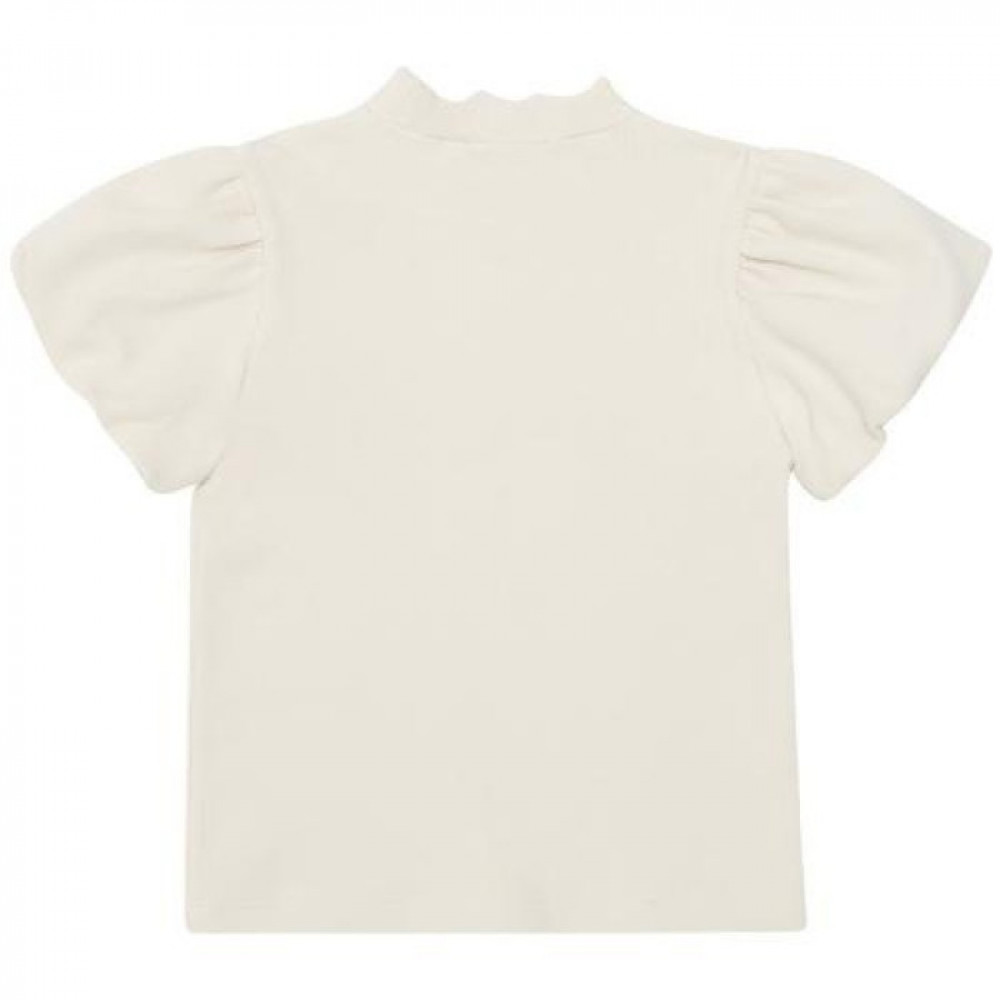 Ця красива сорочка з короткими рукавами виконана в тепло-білому кольорі екрю та має вишиту мордочку кота на грудях. Верх має тонкий комір-стійку, плісировані рукава, а тканина красиво підвернута всередину на кінцях рукавів, що створює гарний ефект.