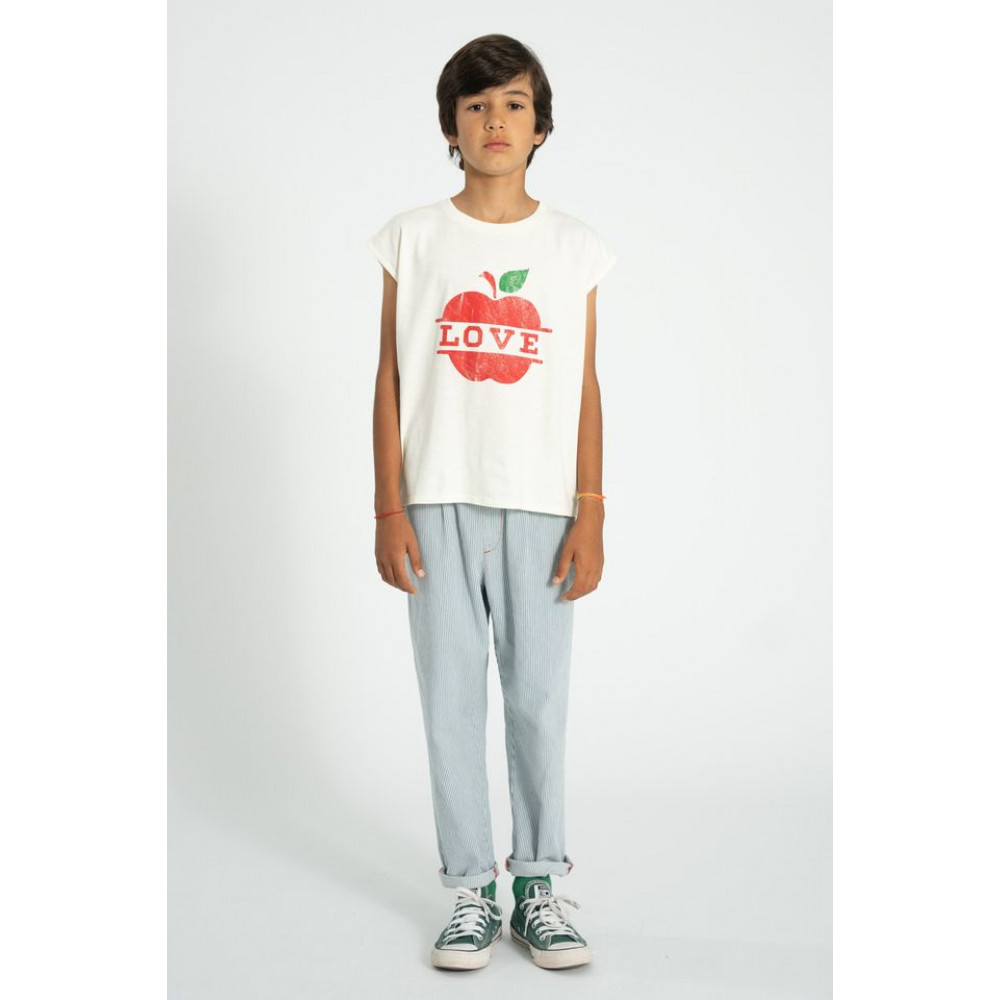 Футболка без рукавів з джерсі полум'яного кольору. Декорований принт спереду та принт з логотипом червоної зірки на спині. Дерев'яні ґудзики на плечі для дитячих розмірів. Прати в холодній воді (макс. 30ºC). Не відбілювати. Не сушити в сушильній машині. Прасувати в прохолодній воді (макс. 110ºC). Не піддавати хімічному чищенню.