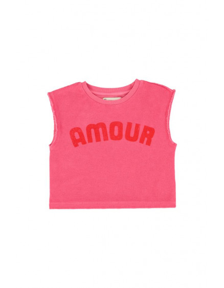 Футболка без рукавів з органічної махрової бавовни. Декоративні принти спереду та ззаду. Прати в холодній воді (макс. 30ºC). Не відбілювати. Не сушити в сушильній машині. Прасувати в прохолодній воді (макс. 110ºC). Не піддавати хімічному чищенню.