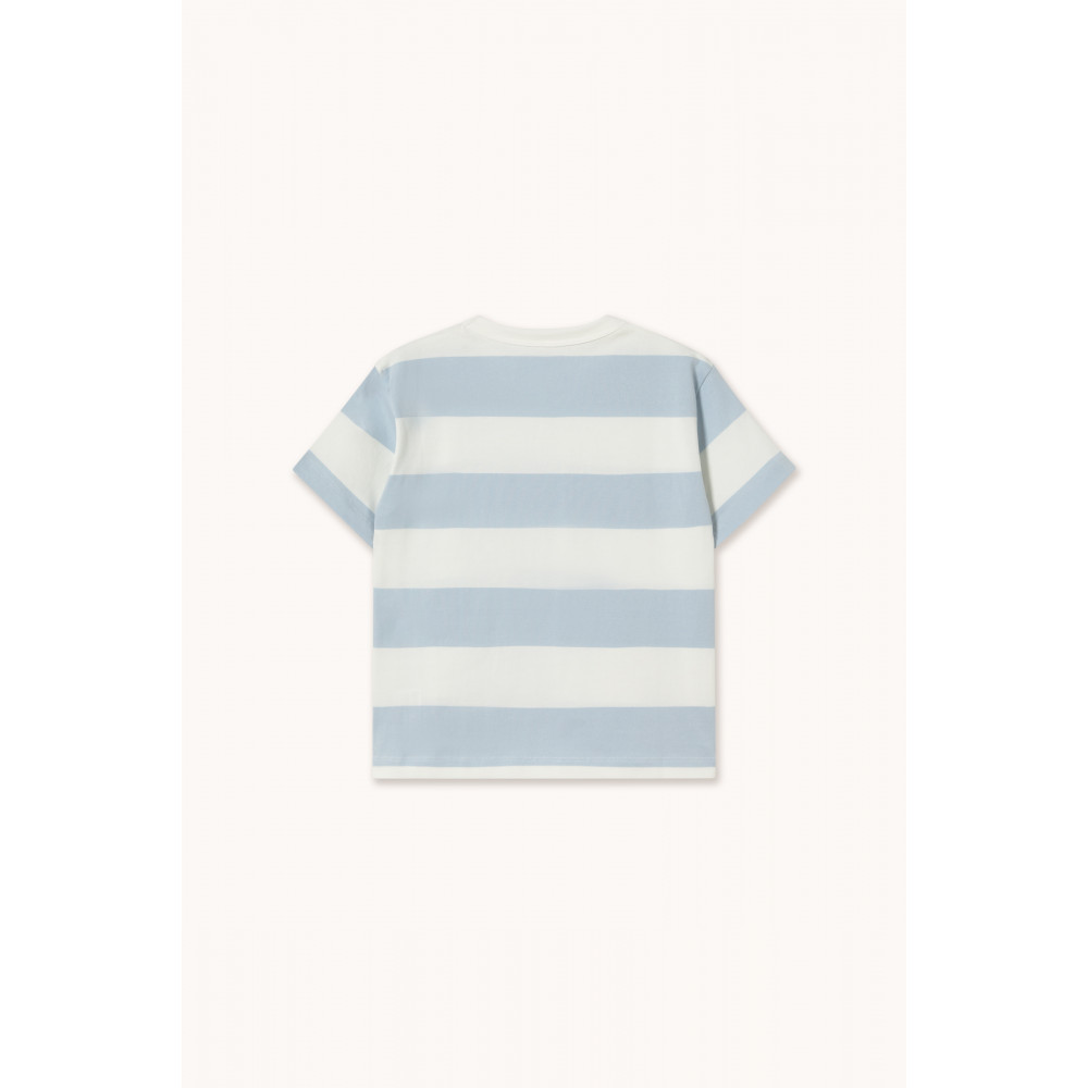 Ця футболка зі смужковим принтом по всій поверхні – це класичний комфорт з родзинкою. Виготовлена зі 100% органічної бавовни, вона поєднує в собі комфорт, стиль та екологічність. Короткі рукави та круглий виріз горловини забезпечують вільну посадку, а м’яка, дихаюча тканина ніжна до шкіри вашої дитини. Чи то повсякденна прогулянка, чи затишний день вдома, ця футболка пропонує стиль і комфорт з чітким акцентом на якість.