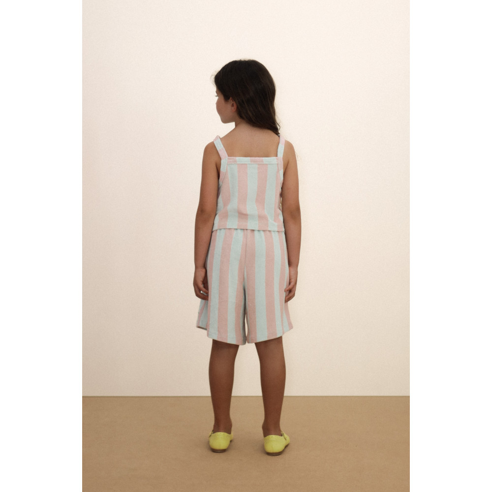 Виготовлена зі 100% органічної бавовни, ця рушникова куртка з принтом жовтих смужок має простий, але стильний силует з круглим вирізом, застібкою на кнопці спереду та еластичними нижніми краями. Поєднуйте її з відповідними штанами для створення чарівного та стильного образу.