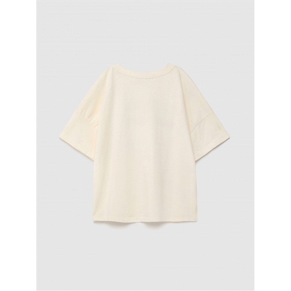 Футболка №01 кольору Cannoli Cream виготовлена зі 100% органічної бавовни та має слоган нашого бренду, надрукований спереду. Вона має занижені плечі, круглий комір та короткі рукави. Має облягаючий крій. Виготовлено в Іспанії.