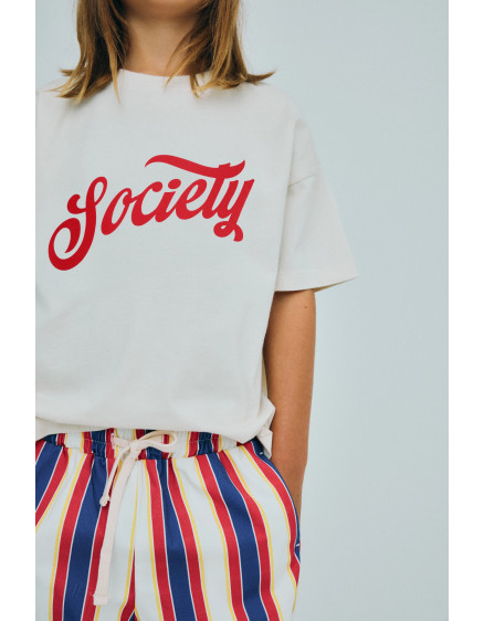 М'яка бавовняна трикотажна футболка з круглим вирізом у рубчик та контрастним принтом спереду. Ідеально підходить для поєднання з іншими речами колекції. Зроблено в Португалії