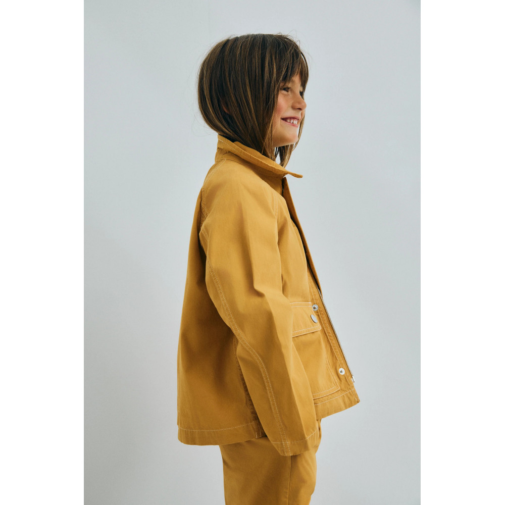 Міцна парусинова куртка з простроченими кишенями та м'яким вельветовим коміром. Прикрашена фірмовою нашивкою з прапором на грудях та контрастною строчкою для стильного та оригінального вигляду. Виготовлено в Португалії