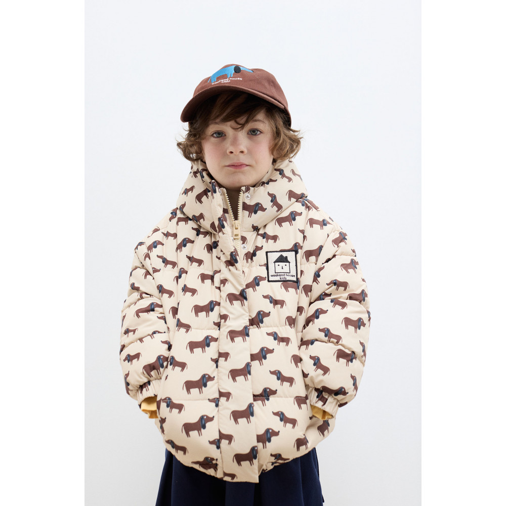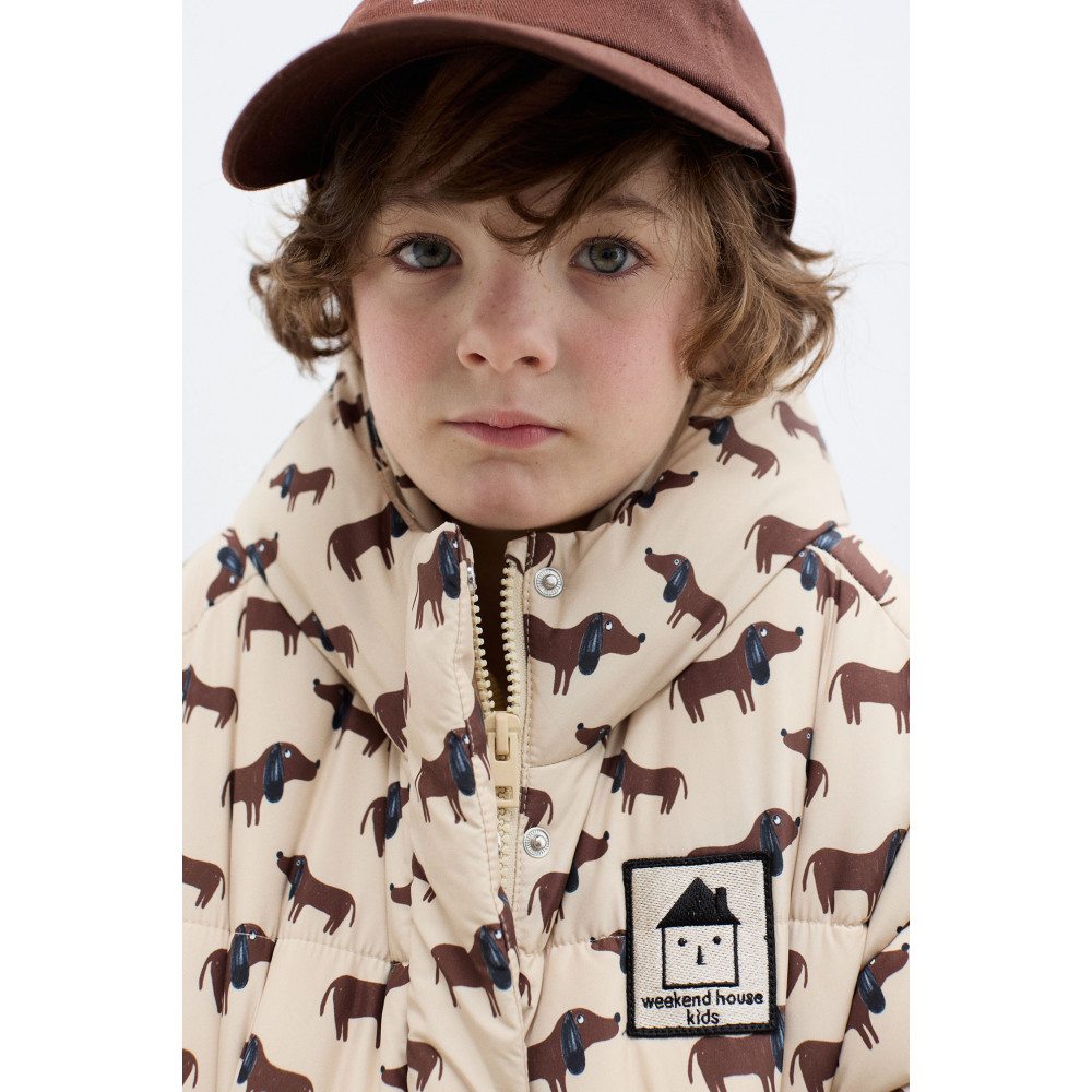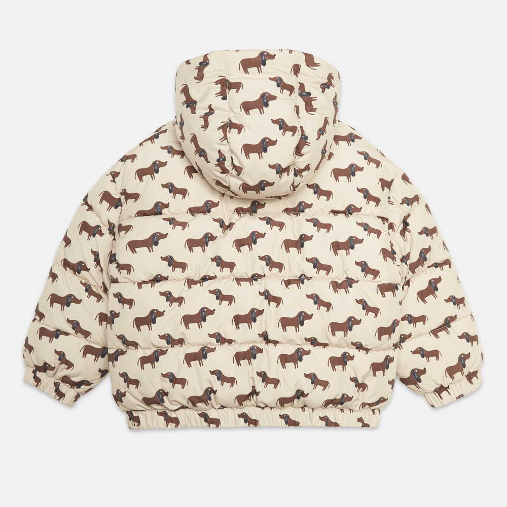Залишайтеся затишними, стильними та захищеними від холоду з цією утепленою курткою з принтом цуценят по всій поверхні.
