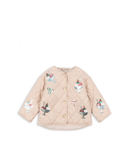 Легко утеплена стьобана куртка з декоративними паєтками. Виготовлена в повсякденному силуеті, що забезпечує трохи вільний крой, з класичним круглим вирізом горловини та тонкими манжетами як милими завершальними штрихами.