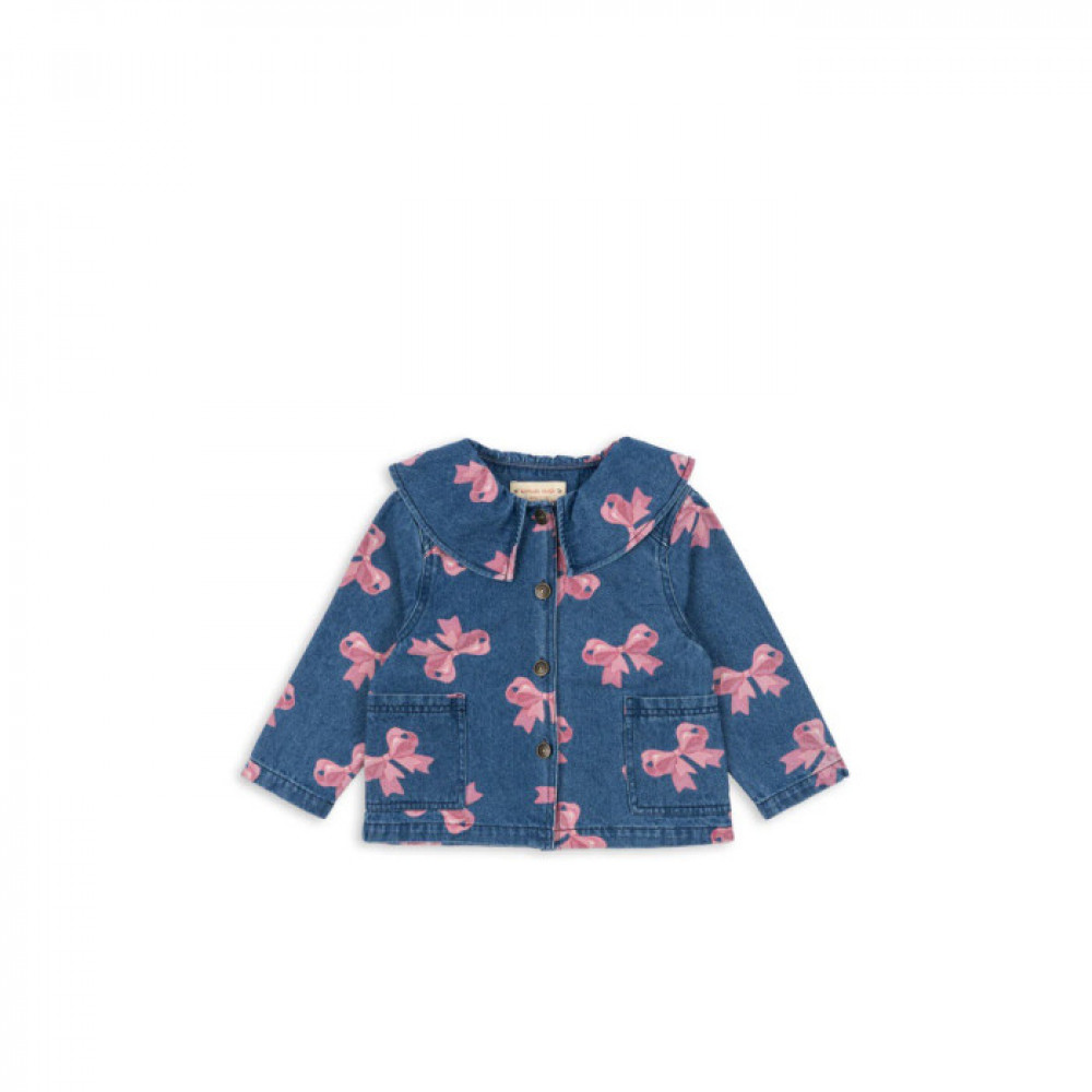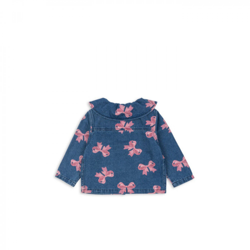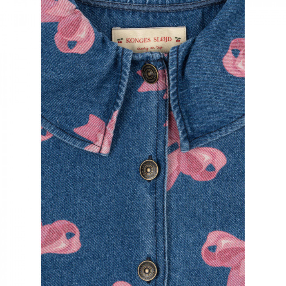 Джинсова сорочка з круглим коміром і передніми кишенями. Рекомендації щодо прання: будь ласка, періть виріб окремо, оскільки виріб може потьмяніти.