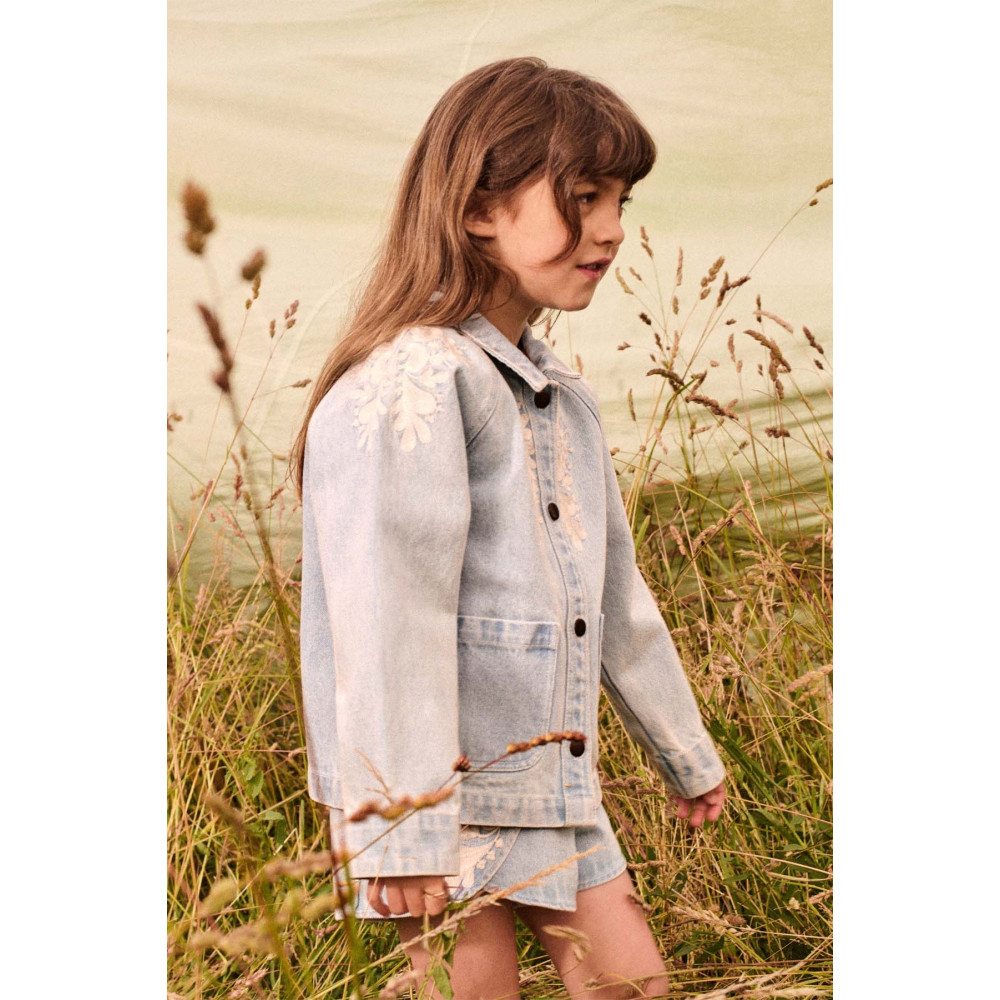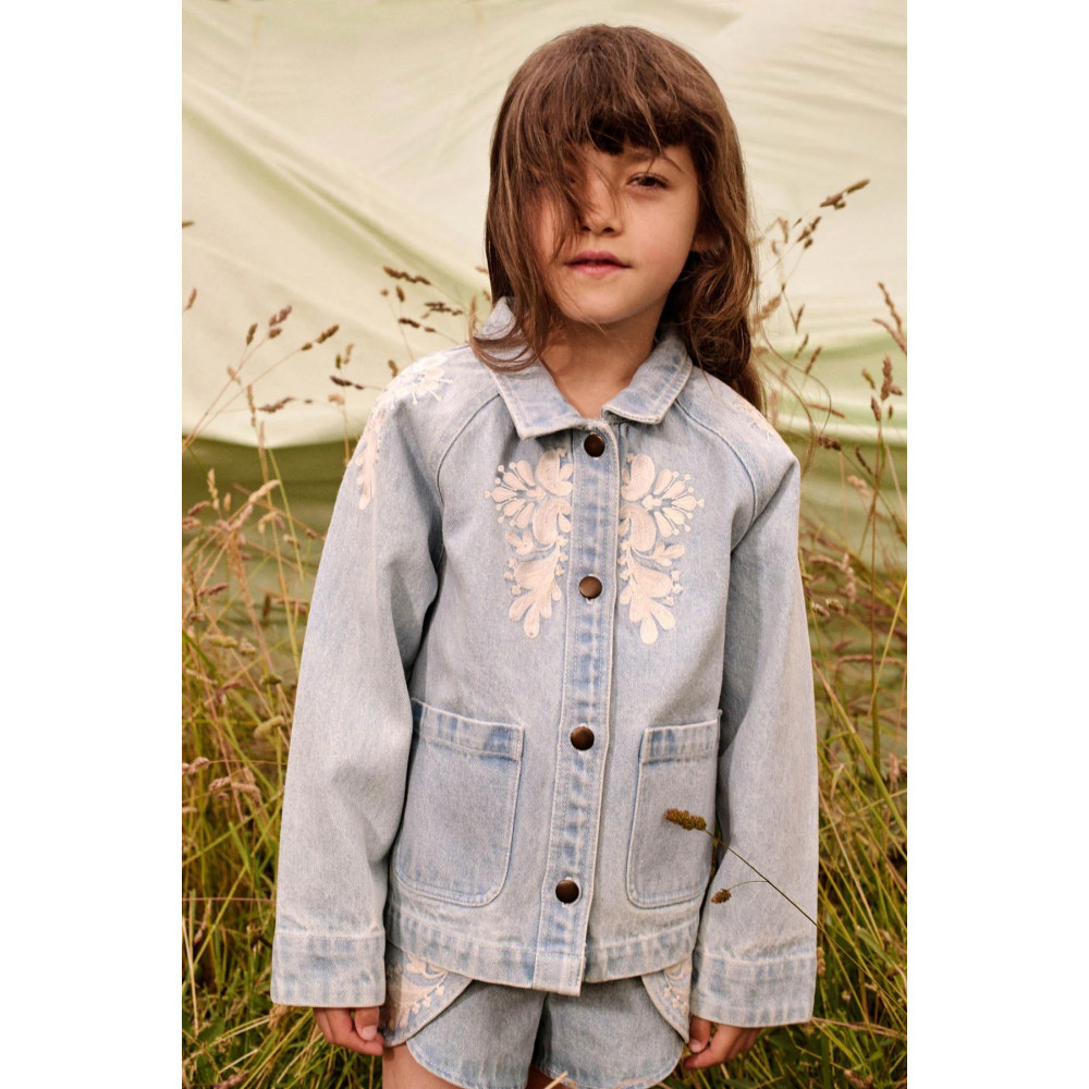Куртка Rafaela, виготовлена з деніму, має фасон на ґудзиках та прикрашена квітковою вишивкою.
