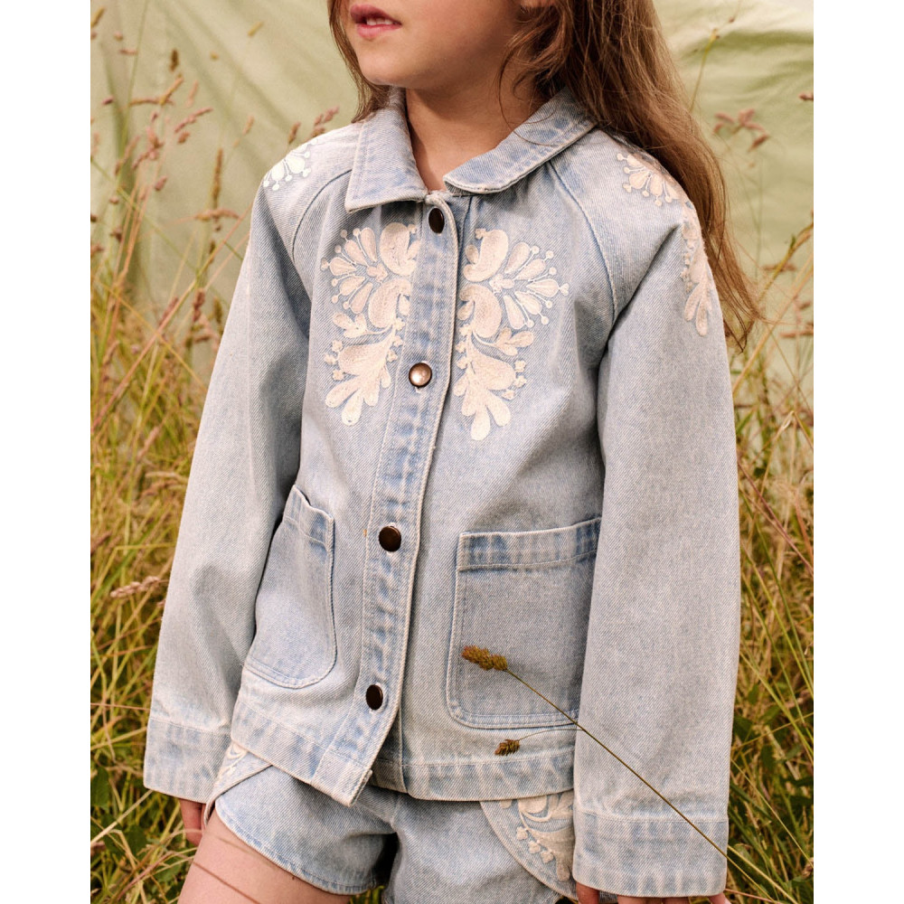 Куртка Rafaela, виготовлена з деніму, має фасон на ґудзиках та прикрашена квітковою вишивкою.