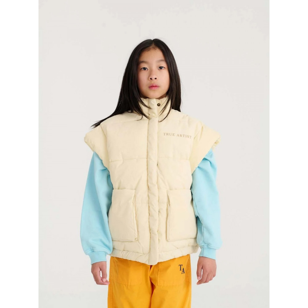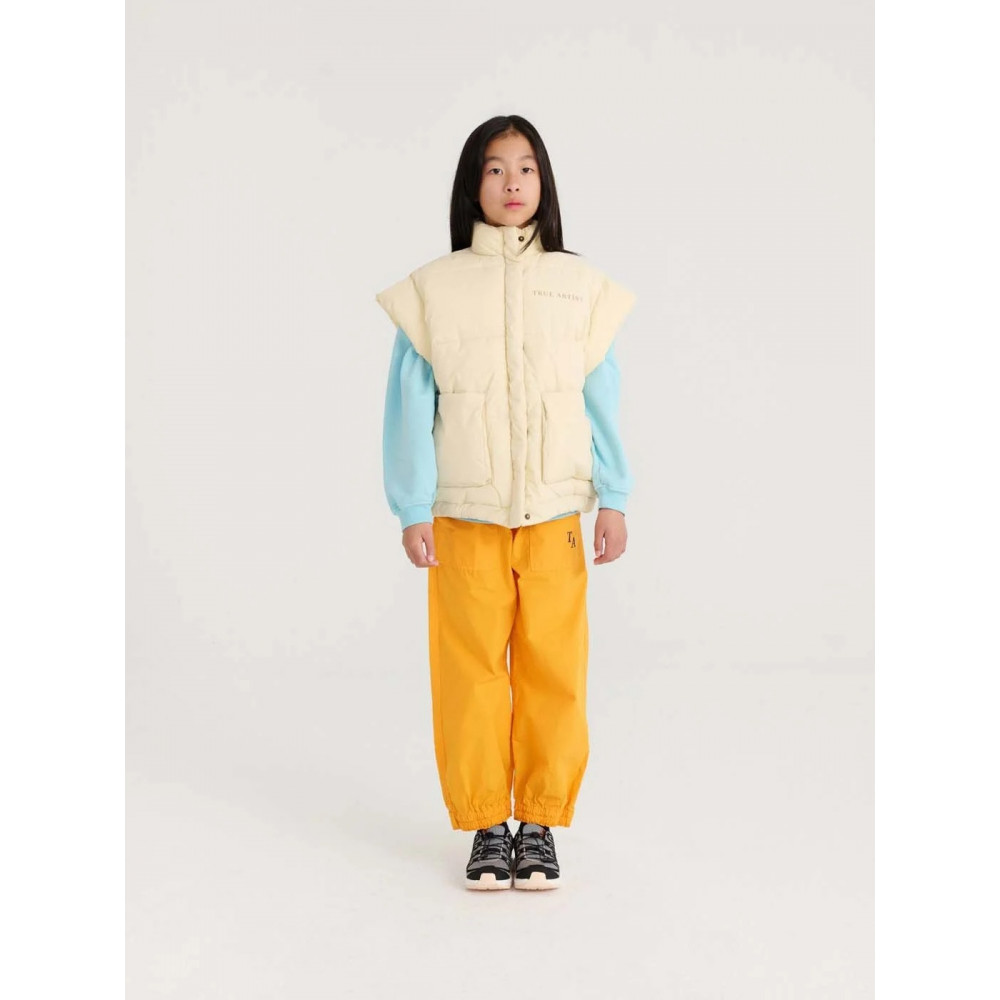 Утеплений жилет №04 виготовлений зі 100% поліаміду. Цей жилет має наш принт TRUE ARTIST на грудях, застібку на блискавку спереду та накладні кишені спереду. Його наповнювач виготовлений зі 100% поліестеру. Він має вільний крій.