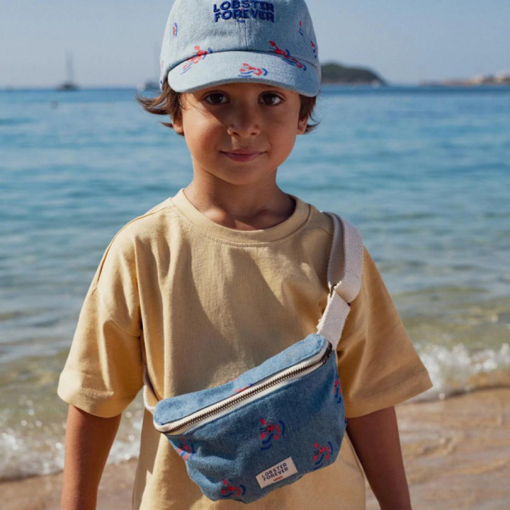 Джинсова поясна сумка з принтом омарів, дитячий розмір. Сертифіковано Oeko-Tex Античні латунні деталі Можливе делікатне прання при 30°C
