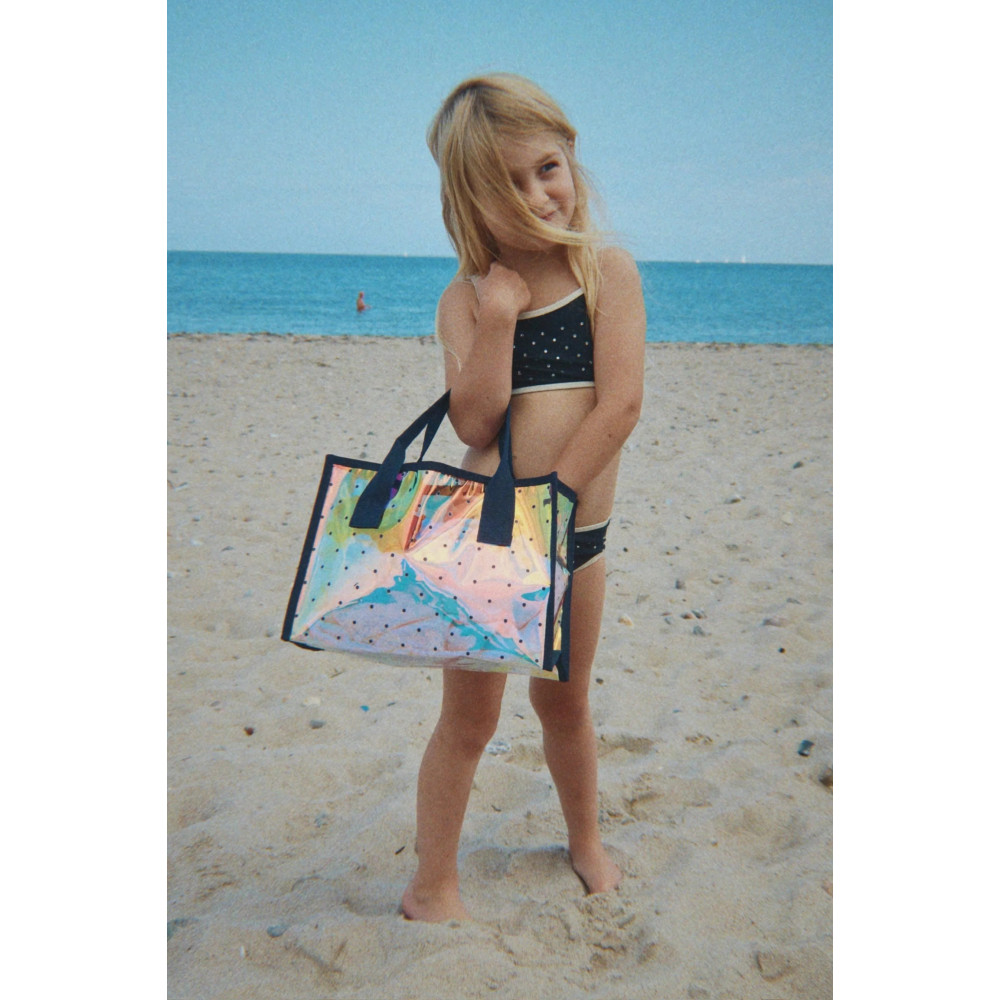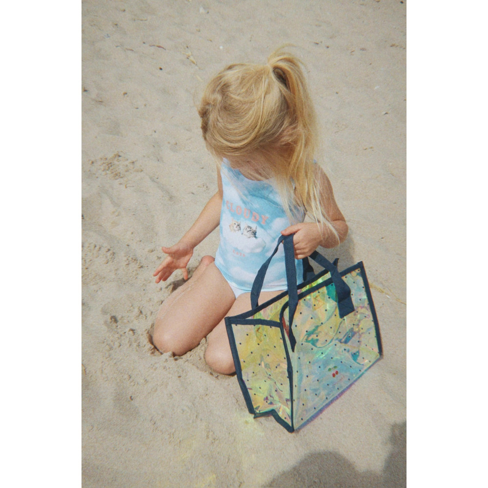 Симпатична та містка пляжна сумка, виготовлена з водонепроникного ПВХ з фірмовими деталями Konges Sløjd. Розроблена з зручними ручками та застібкою-блискавкою. Ідеально підходить для перенесення ваших пляжних речей, таких як купальники, закуски, іграшки та напої. Розміри: 32 x 13 x 22 см