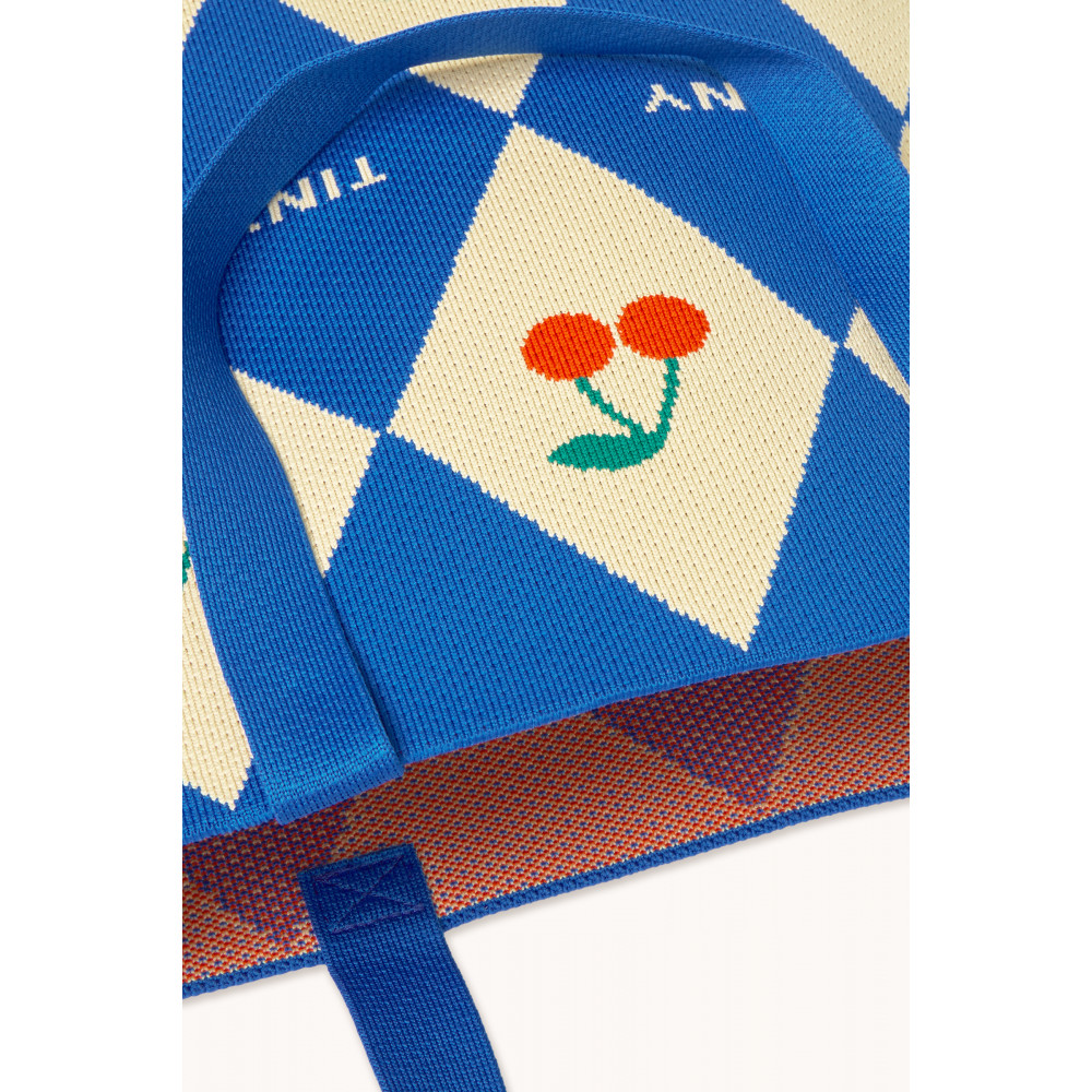 Вирізняється чарівним жакардовим візерунком «Романти та вишні» на синій квадратній основі. Ця універсальна сумка-тоут з верхніми ручками та одним ремінцем може носитися в руці або через плече. Її структурована форма та просторий внутрішній відділ роблять її ідеальною для щоденного використання, будь то для шопінгу, роботи чи повсякденного прогулянки. Цікавий та функціональний аксесуар, який додасть грайливого шарму будь-якому вбранню. Розміри: Висота 34 см x Ширина 34 см x Глибина 11 см.