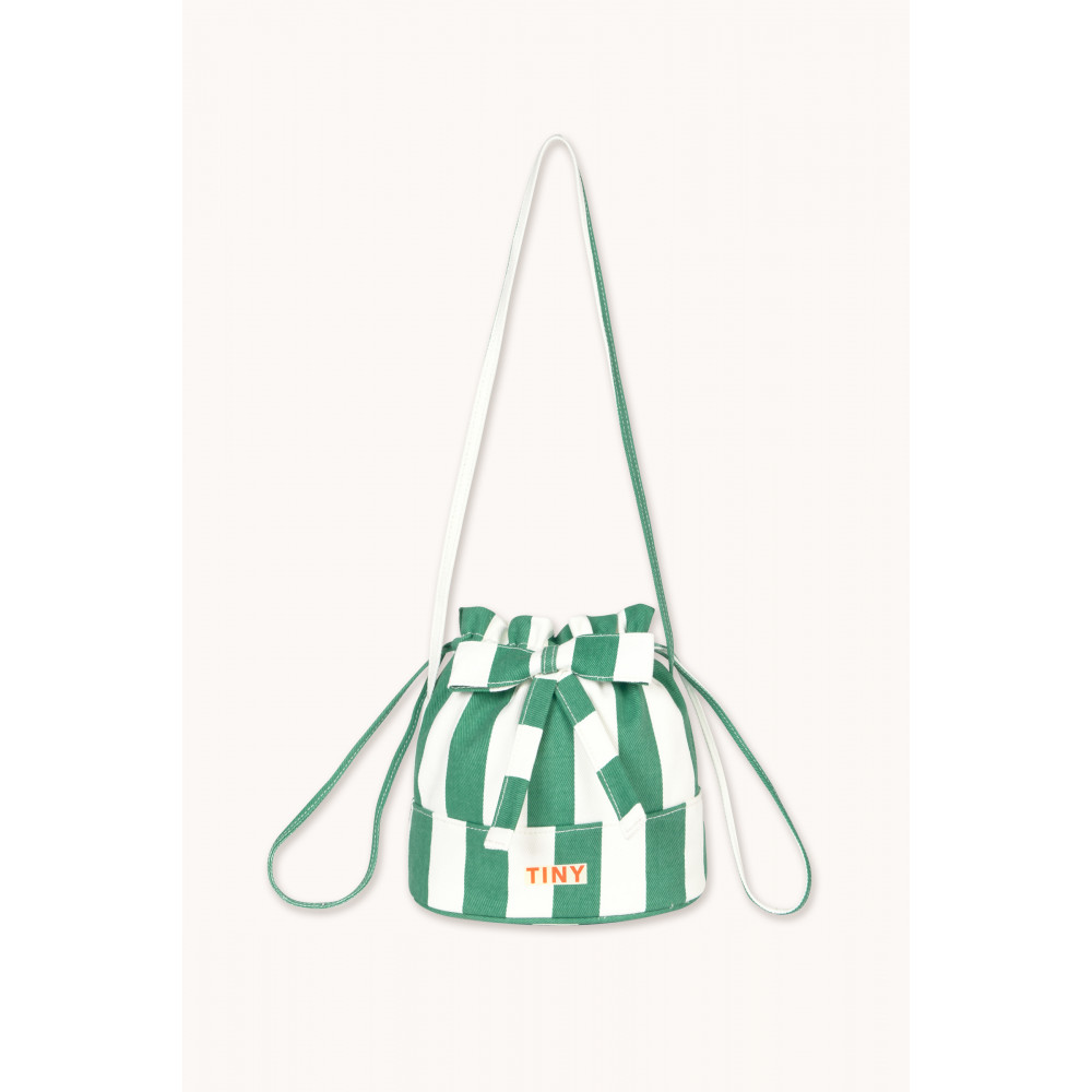 Ця невелика сумка-відро світло-кремового кольору з принтом «Смарагдові смужки» та фіксованим бантом спереду додасть сучасного та грайливого шарму будь-якому вбранню. Виготовлена з міцного матеріалу, вона ідеально підходить як для дітей, так і для дорослих, пропонуючи унікальний та практичний аксесуар для будь-якої події. Розміри: 18 см у висоту, 14 см у ширину та 14 см у глибину. Дотримуйтесь інструкцій з догляду: Не відбілювати Не сушити в сушильній машині Прасувати теплою водою з виворітного боку Не піддавати хімічному чищенню