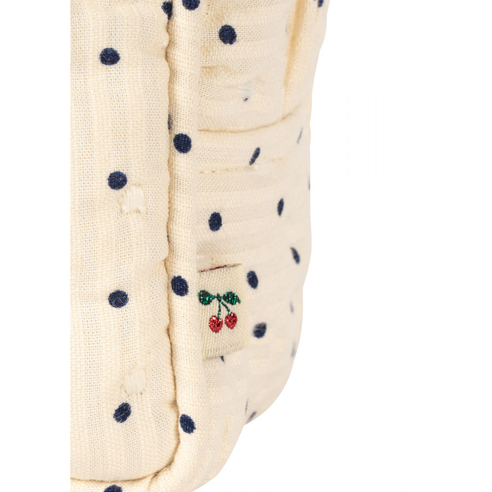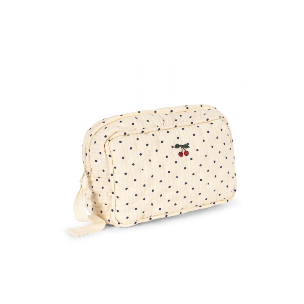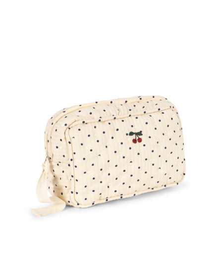 Маленька стьобана косметичка з одним великим відділенням та однією меншою внутрішньою кишенею. М'яка підкладка для безпечного зберігання ваших необхідних речей. Закривається на зручну блискавку. Розміри: Д: 25 см x Г: 12,5 см x В: 11,5 см