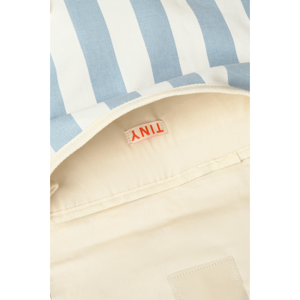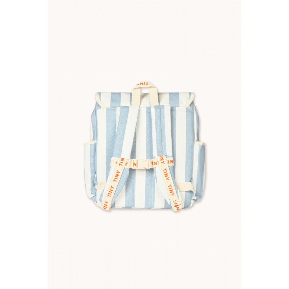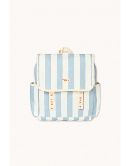 Цей рюкзак із принтом у сині смужки на брудно-білій основі поєднує стиль та функціональність у сучасному, практичному дизайні. Його квадратна м'яка основа та структурований корпус забезпечують міцність та комфорт, а основний клапан із внутрішніми застібками на пряжках та кнопками надійно зберігає речі. Він має внутрішню еластичну стрічку для пляшки, відділення для імені, регульовані плечові ремені з м'якою підкладкою та верхню ручку для зручного перенесення. Бічні кишені забезпечують додаткове місце для дрібних предметів. Цей рюкзак – ідеальний супутник для школи чи щоденних пригод із цікавим та стильним дизайном. Розміри: 31 см x 37 см x 10 см Дотримуйтесь інструкцій з догляду: Не відбілювати Не сушити в сушильній машині Прасувати теплою водою з виворітного боку Не піддавати хімічному чищенню