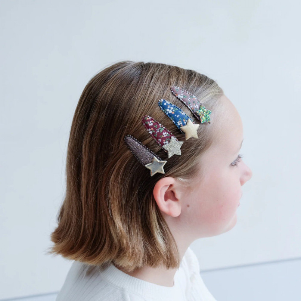 Цей чудовий маленький пакет кліпс просто рясніє насиченими осінніми відтінками, доповненими контрастним золотом і мерехтливими блискучими зірками, ідеально підходить для вловлення магії сезону. 4 в упаковці 5-сантиметрові кліпси clic clac, вкриті тканиною з квітами та блиском
