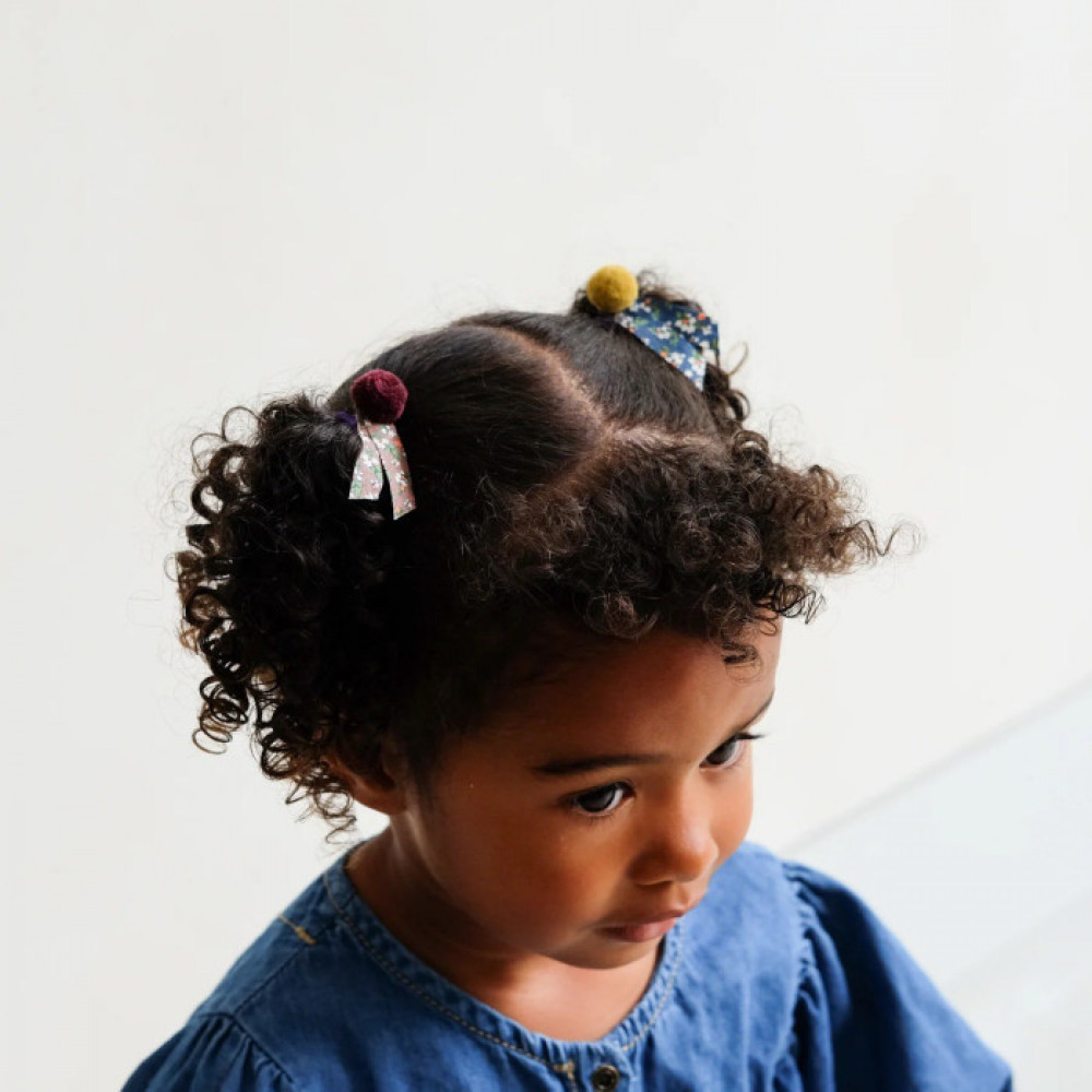 Найкрасивіша маленька упаковка затискачів з помпонами з родзинкою! Надзвичайно м’які помпони теплих насичених відтінків надійно прикріплені до квіткового принта та блискучої тканини. Ідеально підходить для прикраси будь-яких речей! 4 в упаковці