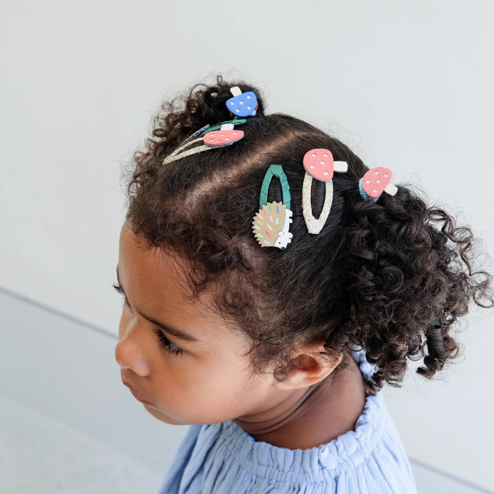 О, привіт, Гаррі! Чарівна пара їжачків з різнокольоровими колючками та два чудових маленьких казкових грибочки-мухоморки — цей набір ідеально підходить для того, щоб додати грайливої нотки веселощів їхнім локонам! 4 в упаковці Затискачі clic-clac, обмотані стрічкою 5 см Їжачки та грибочки-мухоморки виготовлені з м’якої замші та блискучих тканин Увага! Не підходить для дітей віком до 36 місяців