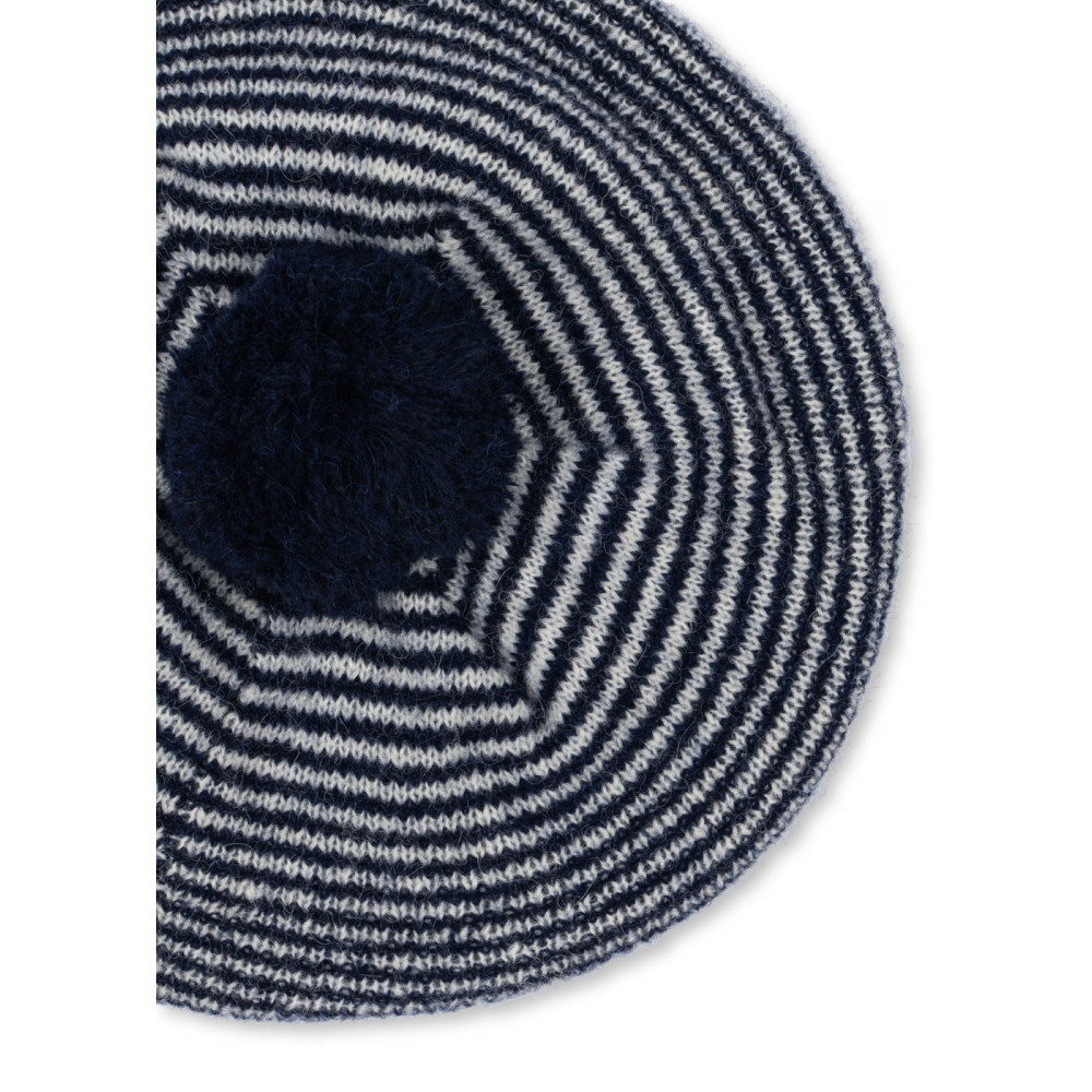 М'який в'язаний берет з теплої суміші вовни з пухнастим помпончиком зверху та ребристим краєм для комфортної посадки.