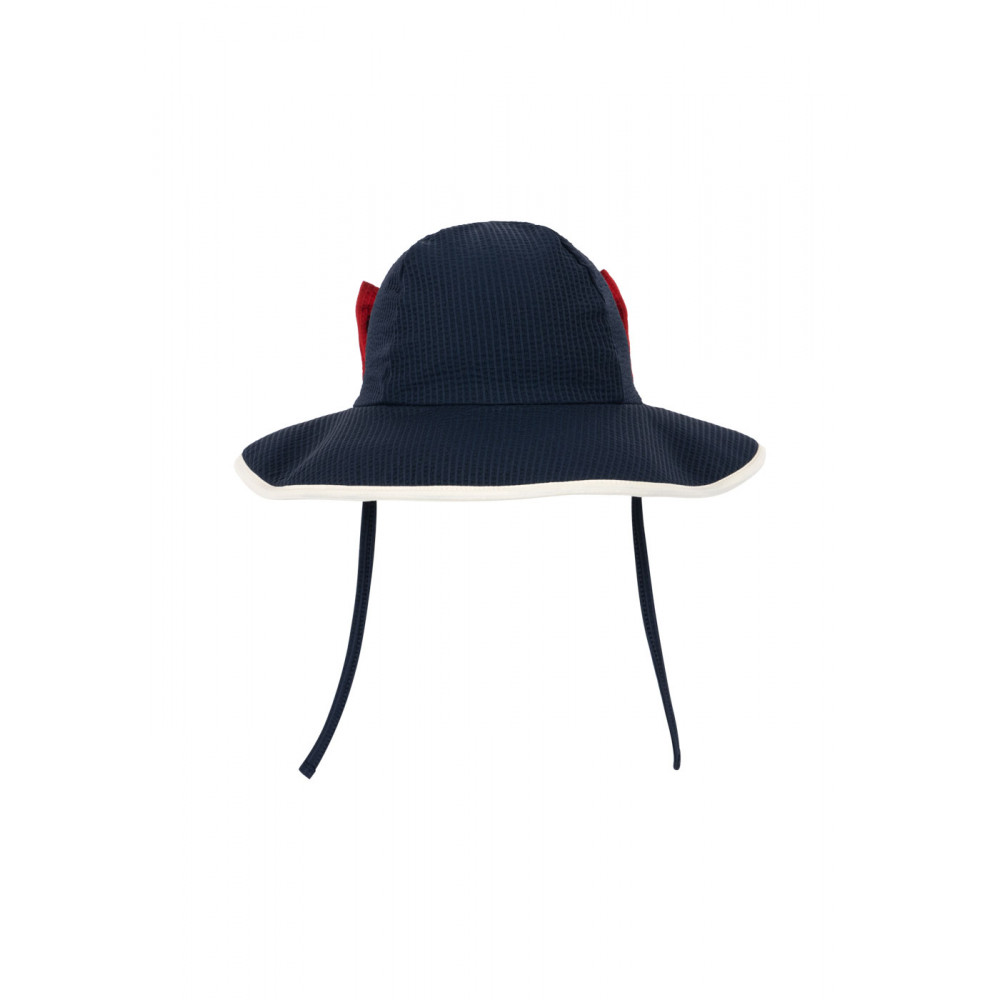 Плавальна шапка з м’якої тканини сірсакер з м’якими полями. З декоративним бантом. Застібається на сонцезахисну шапку за допомогою шнурків під підборіддям для зручної посадки. Плавальна шапка Bowie захищає від сонячних ультрафіолетових променів з найвищим фактором захисту від ультрафіолету UPF 40+. Захищені лише закриті ділянки. Захист може знизитися при використанні, розтягуванні або намоканні. Вплив сонця може сприяти пошкодженню шкіри.