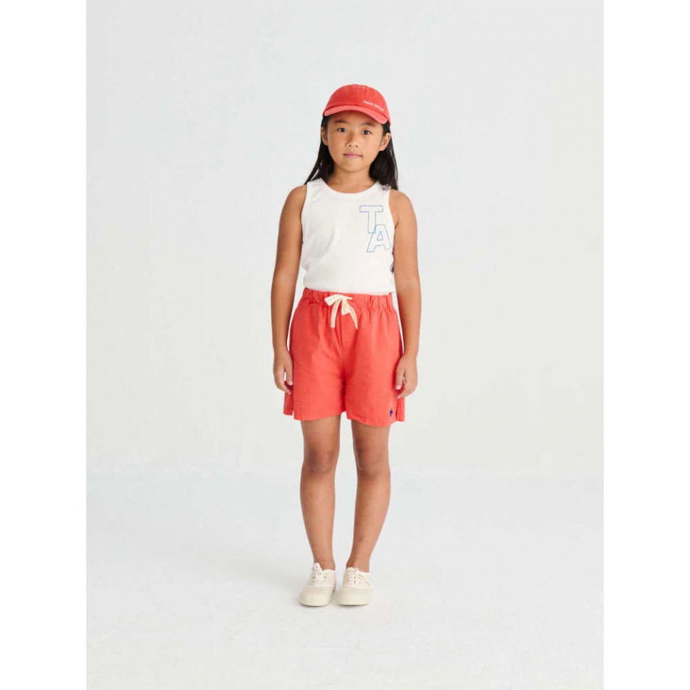 Кепка №04 кольору «Мандариновий червоний» виготовлена зі 100% переробленої бавовни. Ця кепка має вишитий спереду логотип TRUE ARTIST, а ззаду — вузол.