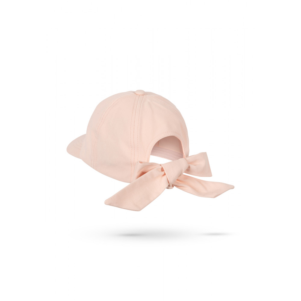 Класна кепка з міцним козирем спереду та м'яким бантом, що зав'язується ззаду.