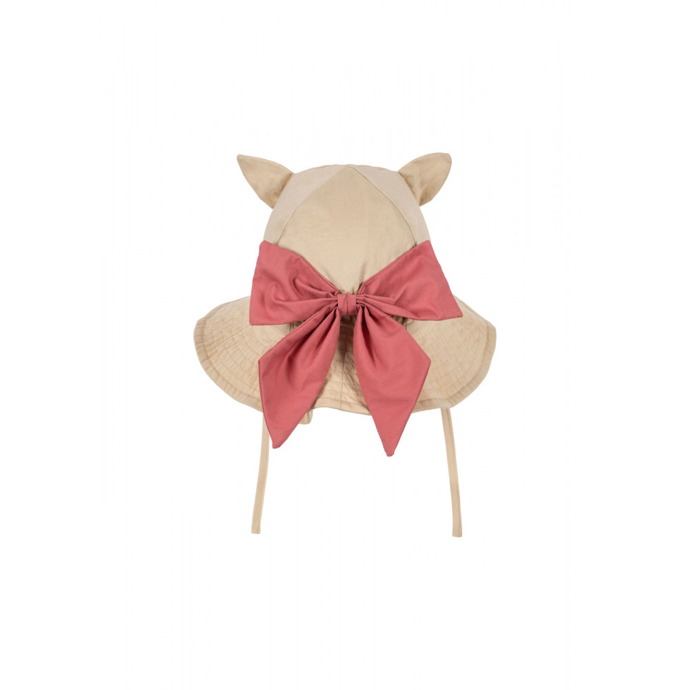 М'який капелюх від сонця з принтом котячої мордочки, милими котячими вушками зверху та декоративним бантом ззаду. Розроблений із шнурками, що зав'язуються під підборіддям для щільного прилягання.